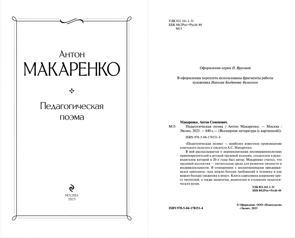 Книга: Педагогическая поэма (Макаренко Антон Семенович); ООО "Издательство "Эксмо", 2023