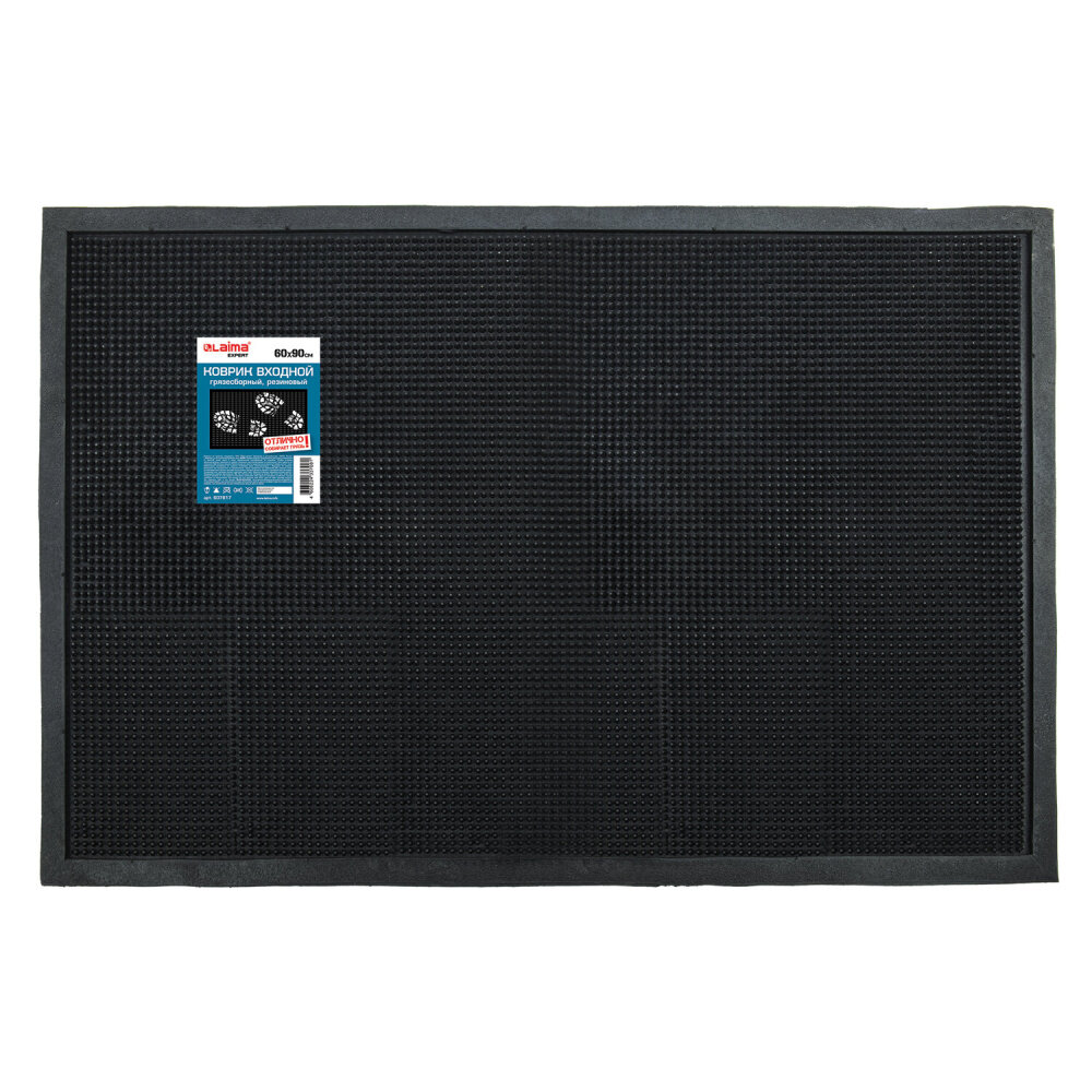 Коврик входной резиновый фактурный грязесборный LAIMA EXPERT. Фактурное резиновое покрытие защищает помещение от уличной грязи. Размер коврика - 60х90 см. Толщина - 12 мм. Цвет - черный.