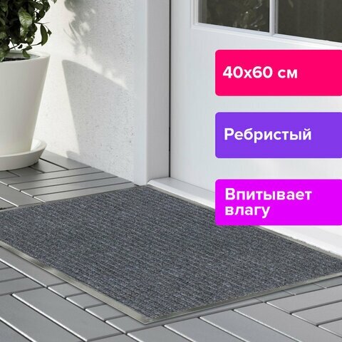 Коврик входной ворсовый влаго-грязезащитный LAIMA 40х60 см ребристый толщина 7 мм серый 602861