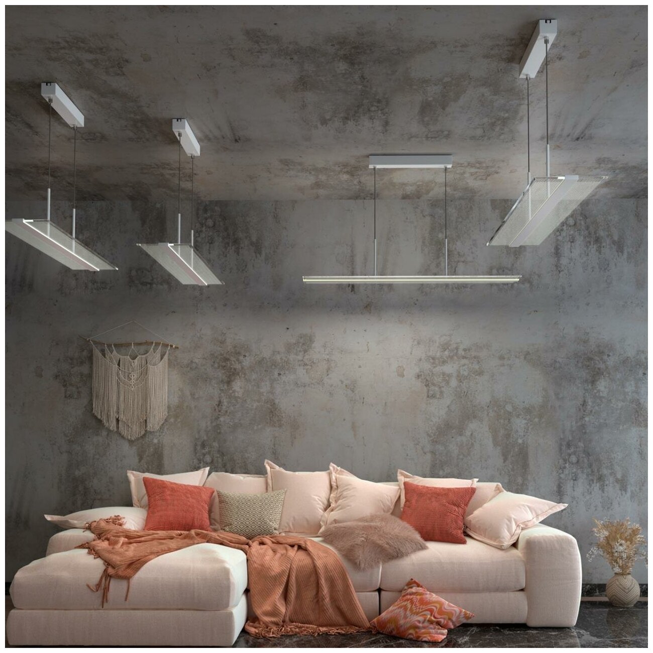Подвесной диммируемый светильник со сменой цветовой температуры линии ITER. Управление – пульт ДУ в комплекте. С помощью пульта ДУ Вы можете сменить цветовую температуру (заменить теплый свет на холодный) или отрегулировать яркость от 0% до 100%. Так же с помощью одного пульта ДУ есть возможность управления несколькими светильниками.