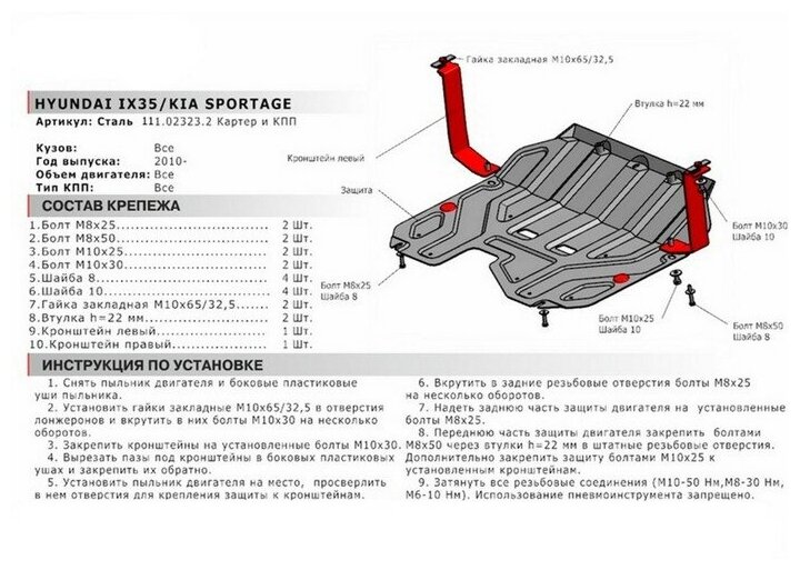 | Комплектация | защита - 1 шт., комплект крепежа, инструкция по установке, упаковка |
