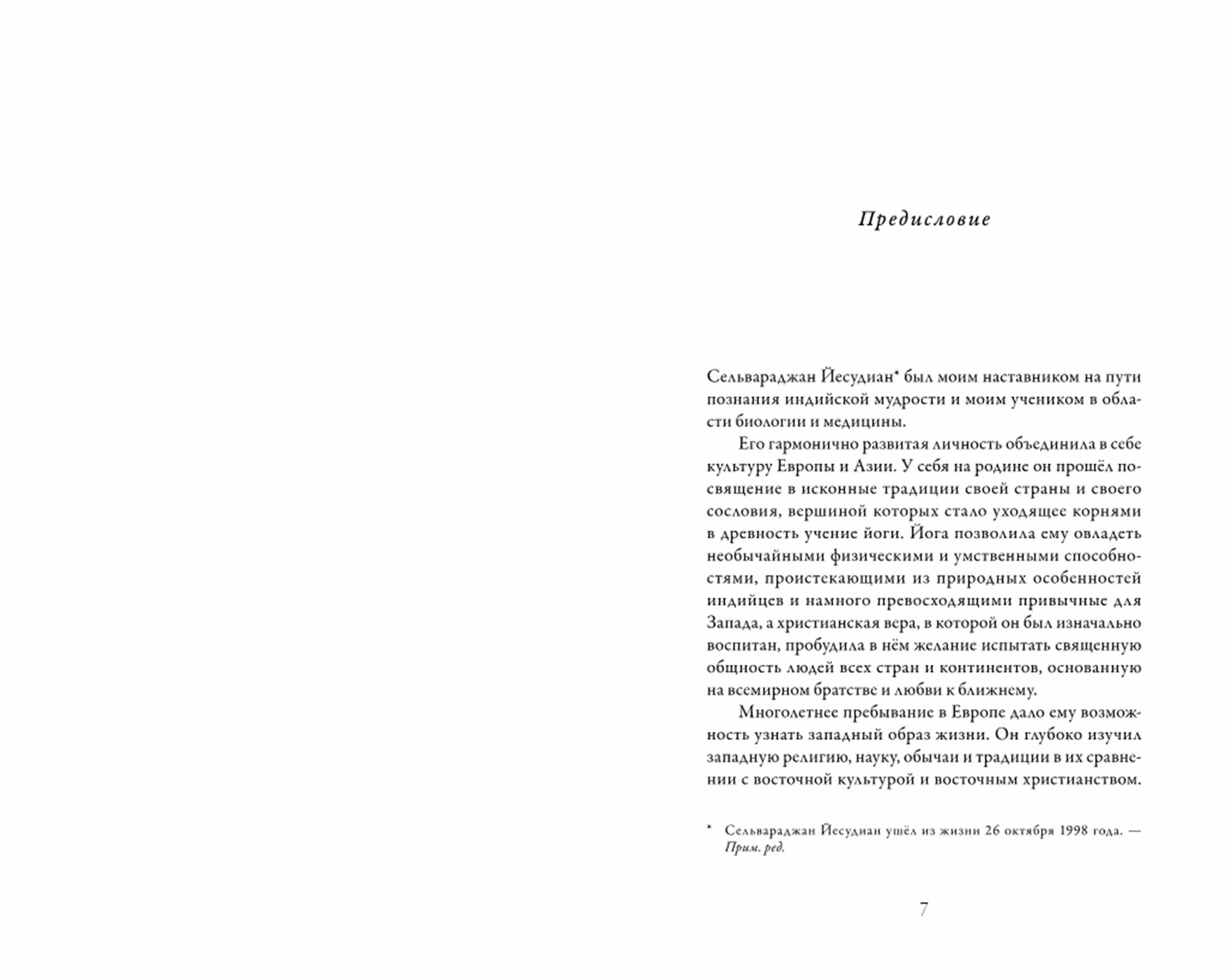 Элизабет Хейч и Сельвараджан Йесудиан описывают шаг за шагом этот благой путь, чтобы каждый смог увидеть божественный свет, сияющий в собственном сердце. Эта книга, представляющая собой классику йогической литературы, особенно примечательна тем, что ее авторы преодолевают рамки религиозных традиций и делают вывод о схожести закономерностей духовного развития Востока и Запада.