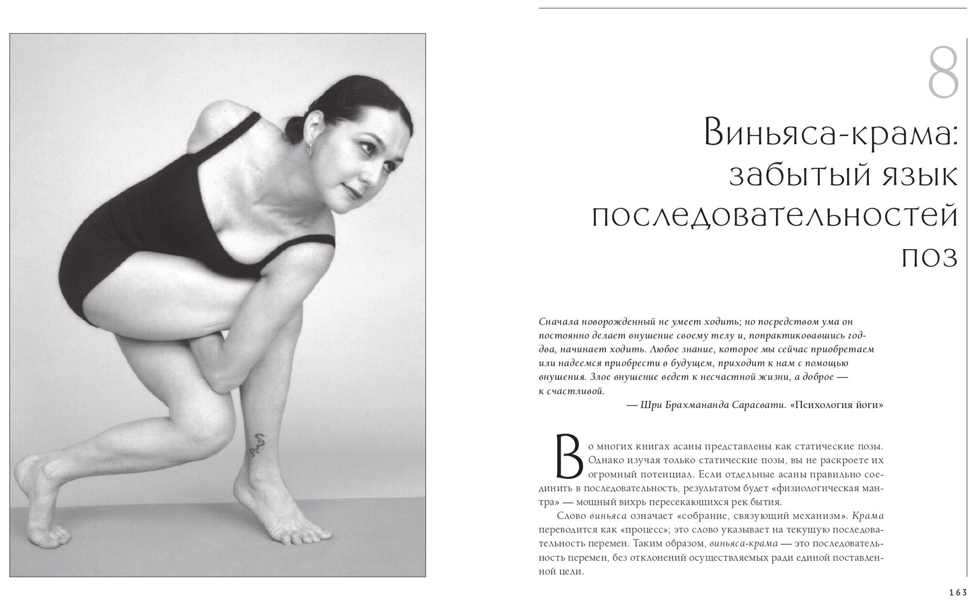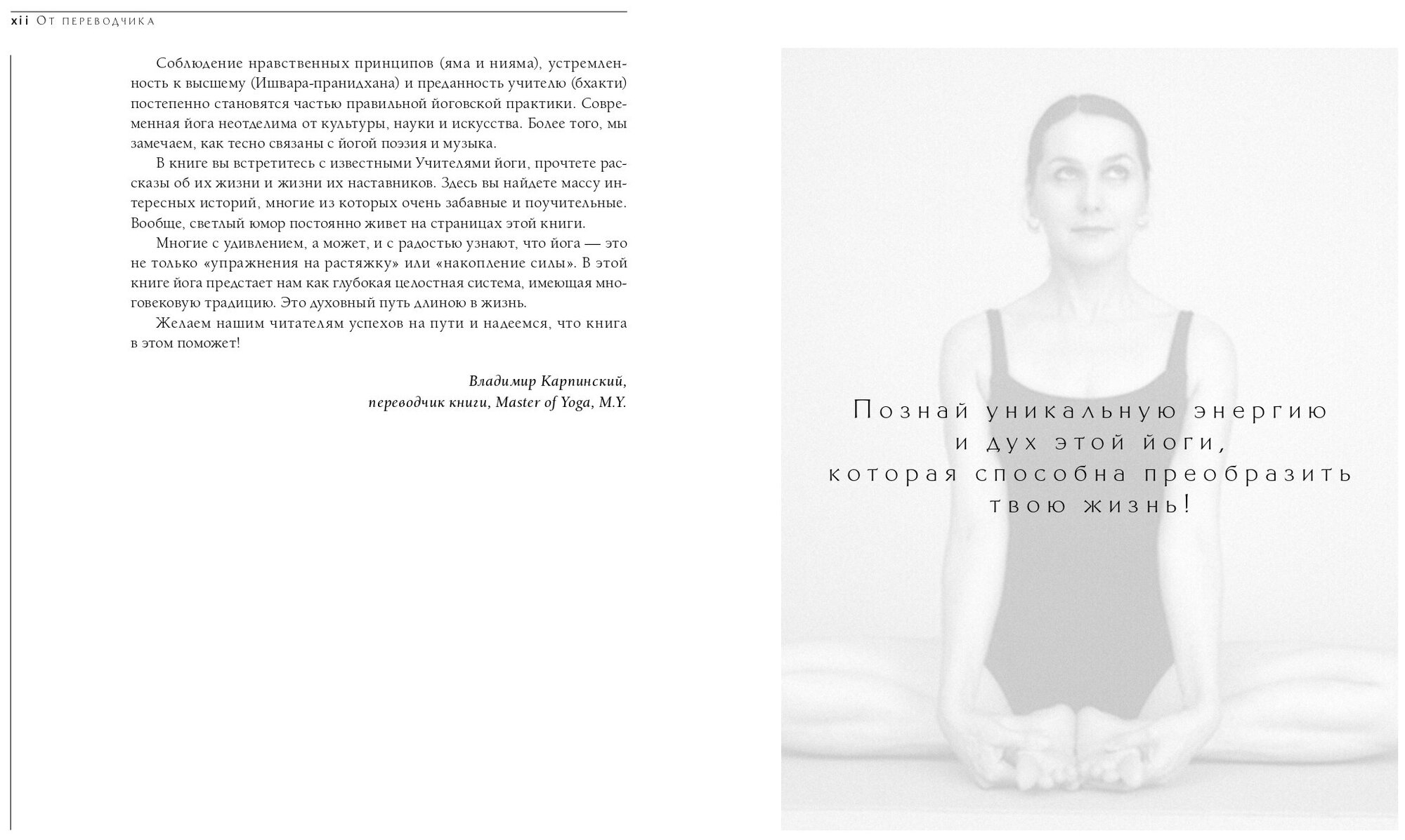 В книге раскрываются многие секреты йоги, ведь ее авторы - Учителя с многолетним опытом, прошедшие подготовку в Индии. Здесь освещены важные разделы йоги, по которым литература у нас пока практически отсутствует: очистительные практики (крийя), работа с дыханием (пранаяма), работа со звуком (нада)и медитация (дхьяна). Много внимания уделяется такой "секретной" теме, как построение последовательностей асан (виньяса-крама). Очень ценно и то, что один из авторов - женщина, которая пишет о важных особенностях йоги для женщин. Здесь почти не повторяют прописных истин: в книге много свежих идей и нового практического опыта.