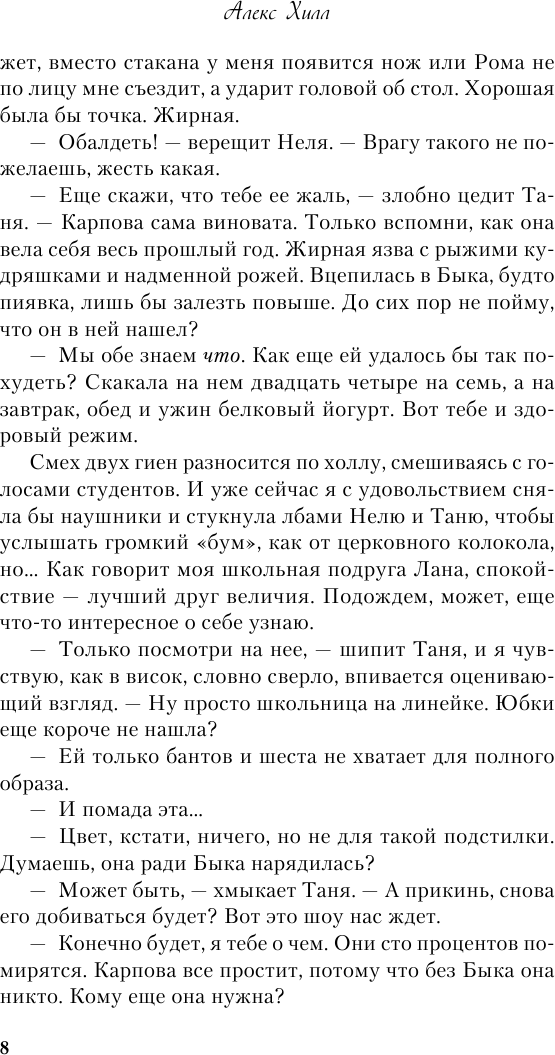 Книга, которая вызовет множество эмоций: здесь есть место и сочувствию, и радости, и грусти. Катя Карпова, знакомая тем, кто читал Алекс Хилл, по книге “Метод книжной героини”, по-прежнему без ума от любовных романов и встречается с самым популярным парнем университета, только эти отношения сложно назвать надежными, покоя и счастья девушке они не приносят. И она решает переключиться на другого парня, но это происходит несколько нелепо, в этот момент всерьез задумываешься над тем, как она выйдет из ситуации. Сюжет превращается в настоящие американские горки, а постоянный диалог с внутренним редактором позволяет воспринимать всё несколько объемнее. Это очень классный ход, такого я не встречала больше ни у одного автора! И с каждой страницей сердце будет биться всё быстрее и быстрее, заставляя гадать, куда заведёт этот вихрь чувств. Потрясающий роман, если любите трепетную и неглупую романтику .