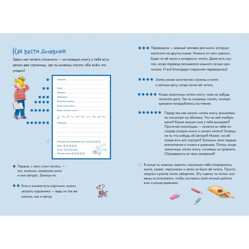 Удобный формат, любимая героиня, наклейки, личные рейтинги и чеклисты, полезные советы ребёнку, как пользоваться читательским дневником.