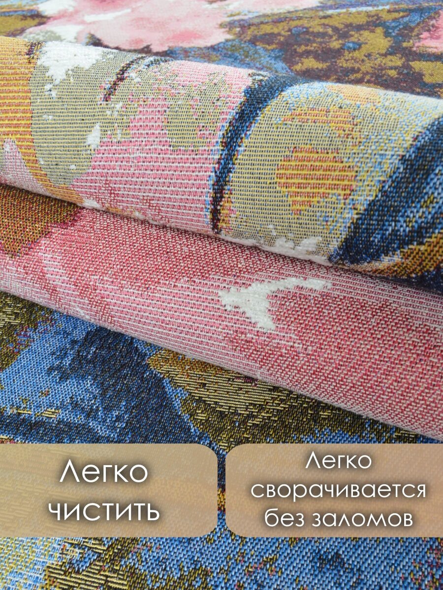 Тканый ковер гобеленового плетения из высококачественных современных материалов (49% полиэстер, 28% акриловый шенилл, 23% хлопок) на противоскользящей основе из латекса. Плотность +/- 1100 г / кв.м., в основе 6 нитей, уток – 3 нити. Оригинальный дизайн дополнит или обновит Вашу гостиную или спальню.В связи с технологическими особенностями производства, рисунок может пропорционально изменяться в зависимости от размера изделия, не влияя на общий внешний вид. Товар сертифицирован по стандарту OEKO-TEX «Доверие текстилю».
