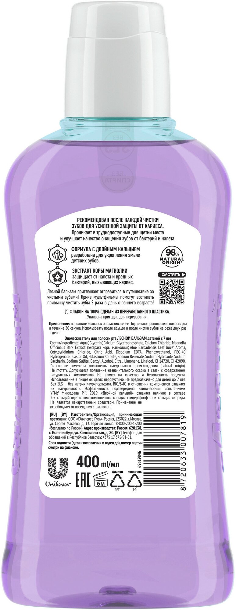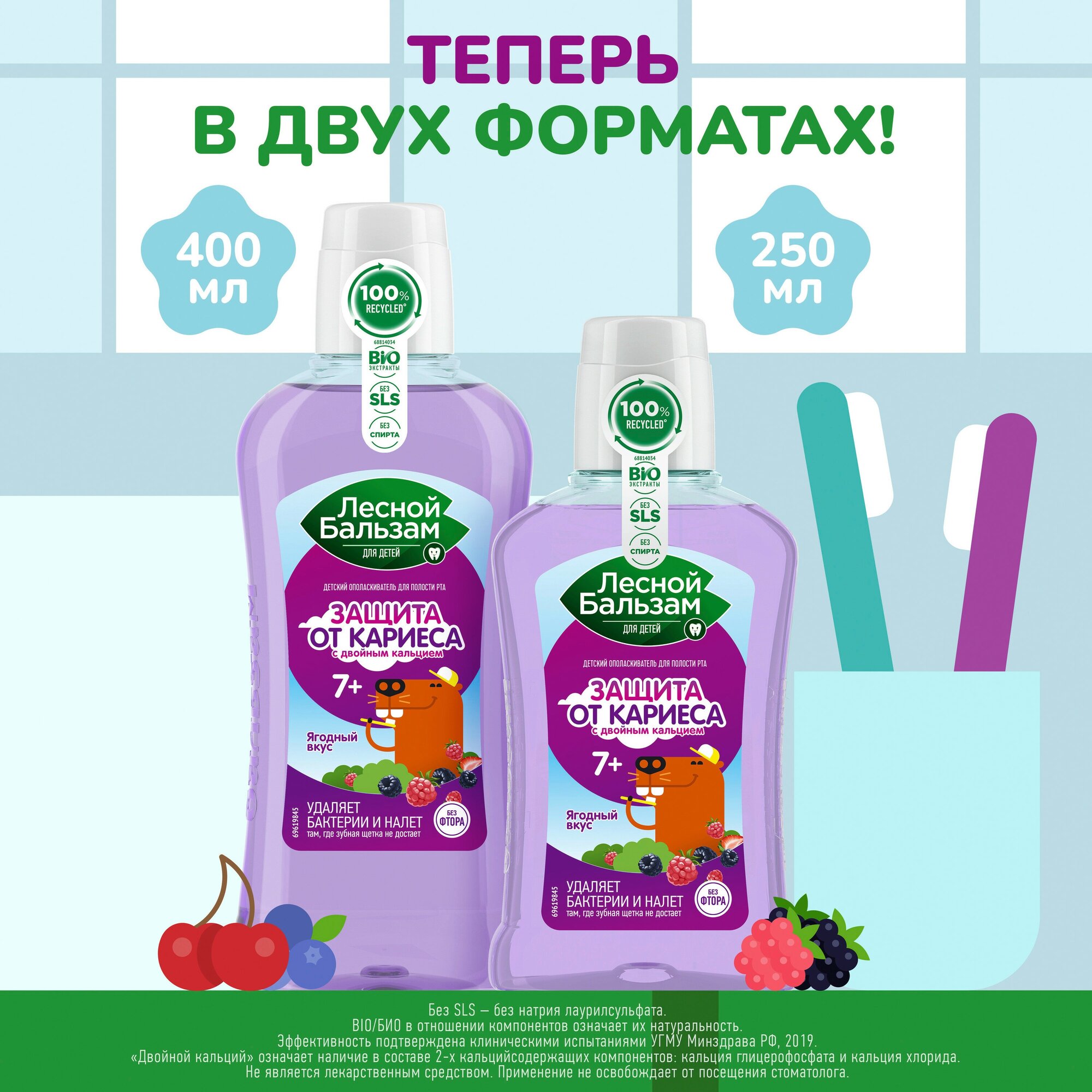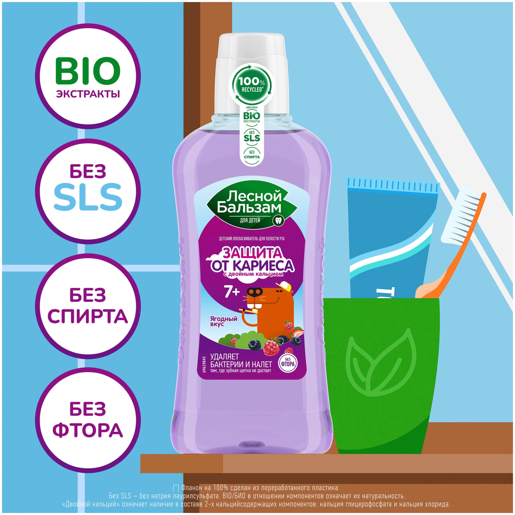 ополаскиватель для полости рта ЛЕСНОЙ БАЛЬЗАМ Защита от кариеса Ягодный вкус 400мл детский