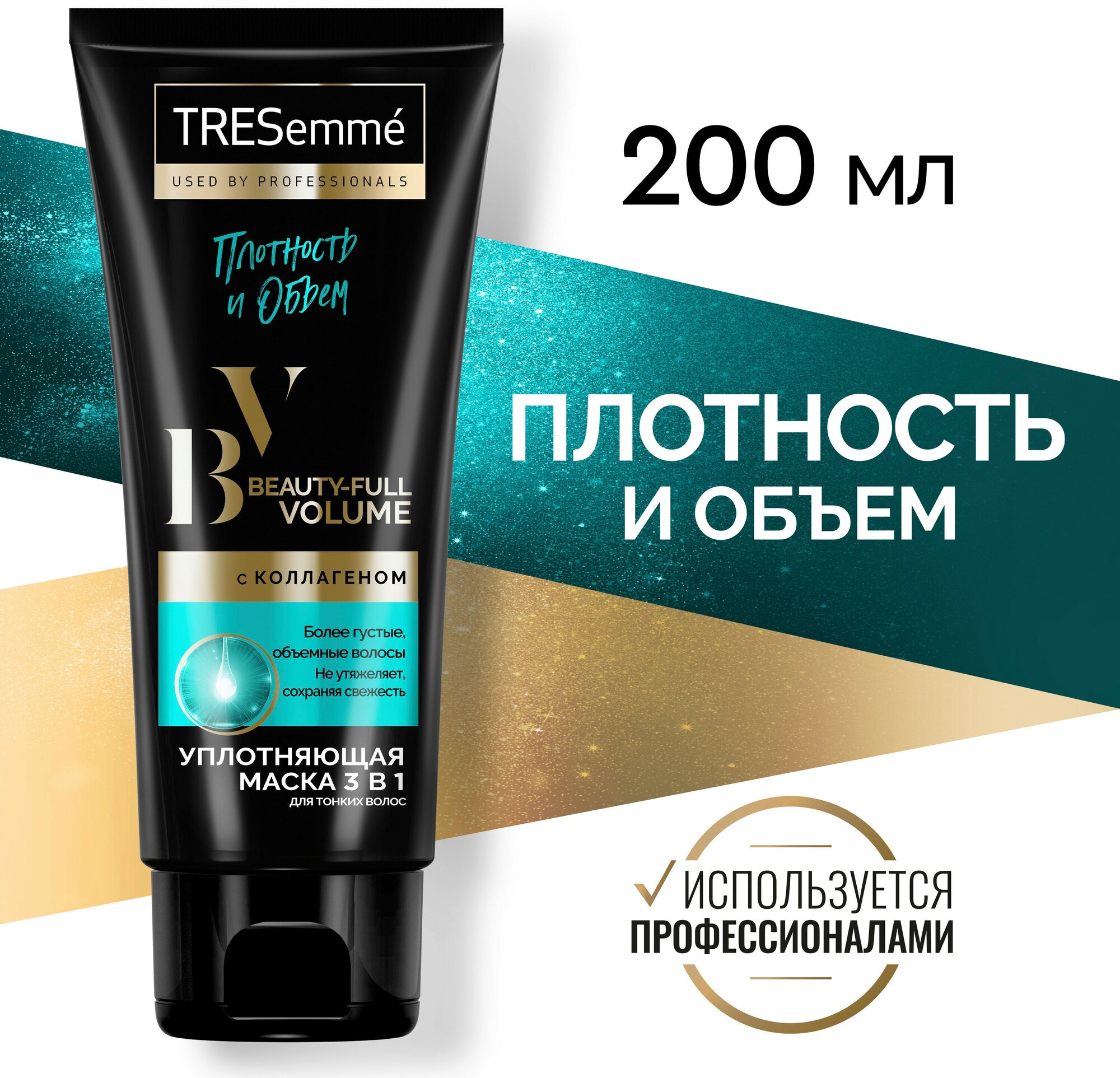 Попробуй эффективную новинку от TRESemm для тонких и ослабленных волос. Маска из серии Beauty-Full Volume имеет уникальную формулу с коллагеном. Уплотняет волосы без утяжеления. Питает и укрепляет волосы, придавая им силу. Легкая текстура не утяжеляет волосы, сохраняя их свежесть и подвижность. Маску можно использовать тремя способами. Как кондиционер: нанеси на вымытые влажные волосы, смой. В качестве маски: нанеси на вымытые влажные волосы, оставь на 3-5 минут, смой. И как несмываемый уход: нанеси на вымытые влажные волосы тонким слоем (от середины длины до кончиков или только на кончики), не смывай. Используй один или более раз в неделю. Всего три шага на пути к безупречному образу и роскошным волосам. Начни с шампуня для качественного и бережного очищения. Далее для интенсивного ухода используй кондиционер и маску 3 в 1 совместно. Профессионалы уверены: каждая укладка зависит от качества волос. TRESemme профессиональная основа для любого образа.