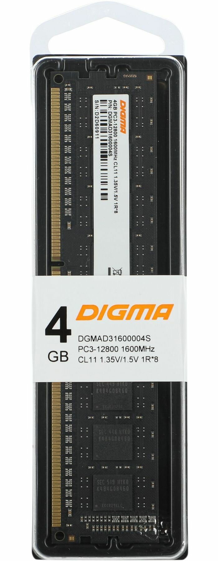 Оперативная память Digma DDR3L - 4Gb 1600 МГц DIMM CL11 (dgmad31600004s)
