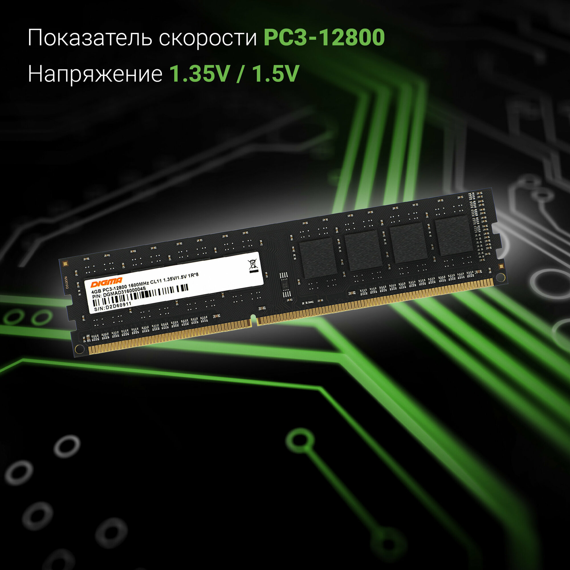 Оперативная память Digma DGMAD31600004S DDR3L - 4ГБ 1600, DIMM, Ret