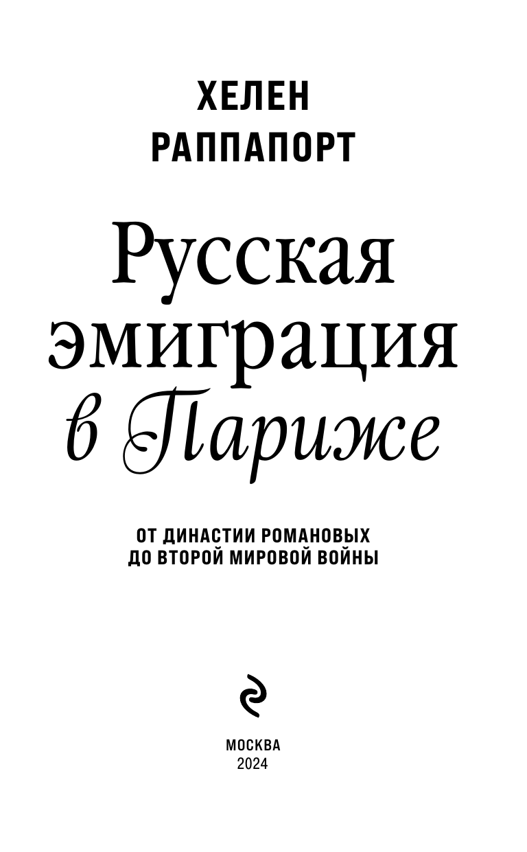 Русская эмиграция в Париже. От династии Романовых до Второй мировой войны (Хелен Раппапорт); Эксмо, Редакция 1, 2024