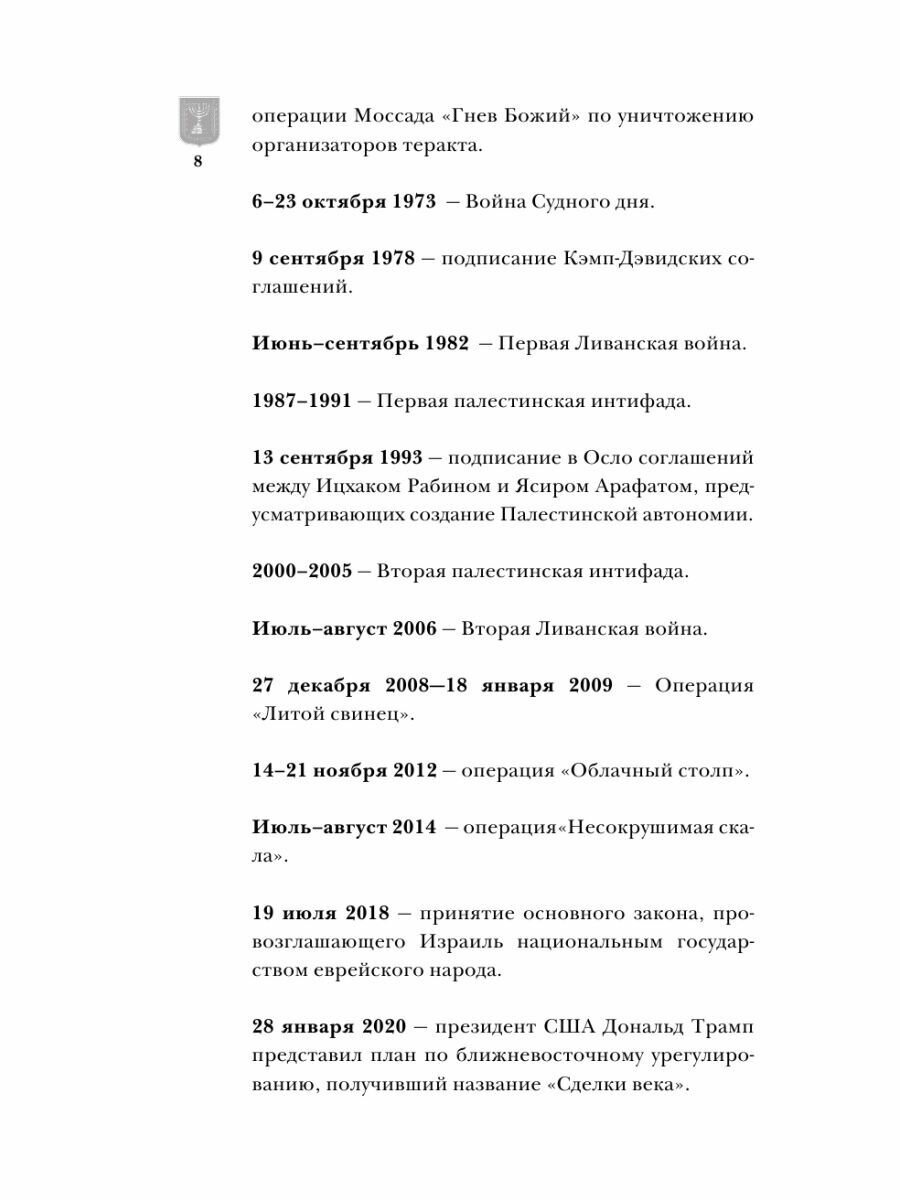 Были большие опасения, что история Израиля превратится в историю еврейского народа со времен Давида и Соломона, однако автор удивил - он излагает именно историю СОВРЕМЕННОГО государства Израиль. Правда, он начинает ее не с 1940-х, а с предыстории XIX века, но это вполне разумно. На арабо-израильские конфликты автор глядит, конечно, односторонне (арабы, мол, вечно нападают, а израильтяне лишь защищаются), но это ожидаемо. Когда в данной серии появятся книги про историю Египта и Ливана, у россиян будет возможность поглядеть на эти конфликты и с другой стороны.