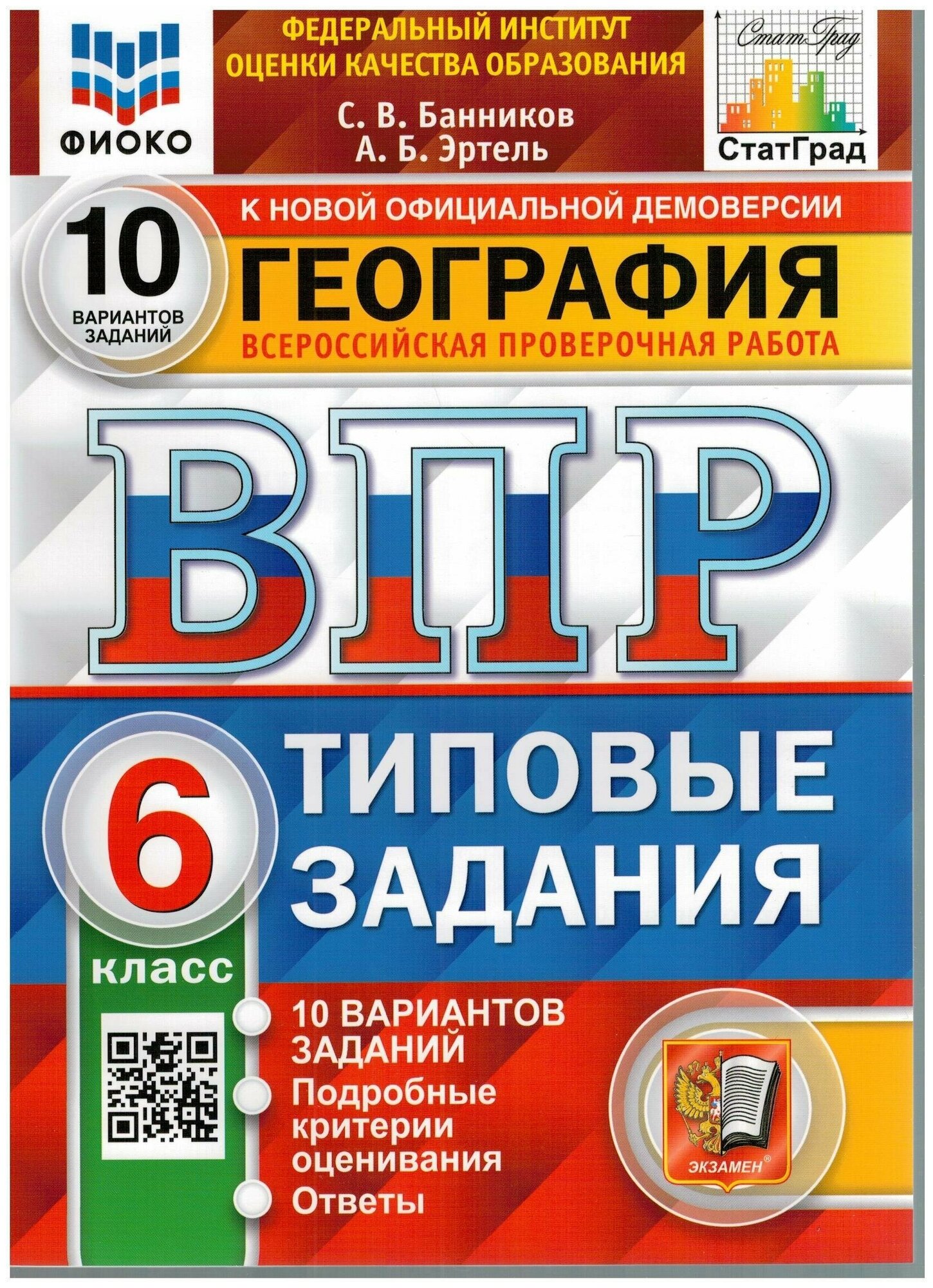 География. Всероссийская проверочная работа. 6 класс. Типовые задания. 10 вариантов заданий. Подробные критерии оценивания. Ответы (Анна Борисовна Эртель, Сергей Валерьевич Банников); Экзамен, 2025