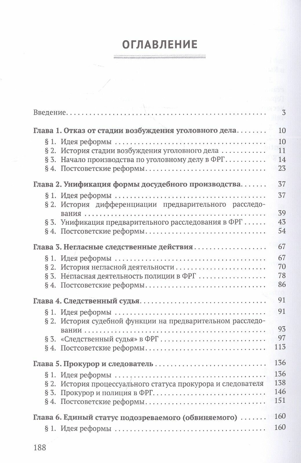 Принято считать, что каждая из обозначенных идей основана на передовом европейском опыте, наиболее ярким выразителем которого выступает ФРГ. В связи с этим все шесть обозначенных предложений, а также соответствующие им постсоветские реформы анализируются автором через призму германского уголовного процесса.