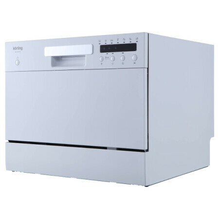 Компактные габариты Небольшие габариты компактной посудомоечной машины позволяют называть ее настольной и даже переносной. Небольшие размеры и легкость подключения помогут разместить прибор в любой части кухни, где есть коммуникации и немного свободного места, например, под раковиной или внутри кухонной колонны. В любой момент времени прибор можно переставить или даже перевезти в другое место. 7 программ мойки Большой выбор программ помогает выбрать наиболее подходящий, для любых типов посуды и видов загрязнений. Независимо от того, насколько сильными окажутся загрязнений или будет деликатным материал, прибор выполнит свою задачу наилучшим образом. Программа самоочистки Особая программа позволяет автоматически установить необходимые параметры для очистки камеры от жировых загрязнений и известнякового налета. Оптимально подобранный уровень температуры и длительности программы помогают добиться максимальной эффективности очистки при использовании специальных средств. Вместительная камера на 6 комплектов При своих видимых небольших габаритах, компактная посудомоечная машина Korting вмещает в себя целых 6 комплектов посуды, что вполне подходит даже тем, кто часто готовит дома и использует объемные блюда. Система защиты от протечек «AquaControl» Система защиты от протечек «AquaControl» обеспечивает автоматический контроль количества воды в посудомоечных машинах Korting. В случае перелива или протечек включается специальное устройство «AquaStop», которое блокирует подачу воды. Таким образом, от протечек застрахованы и вы, и ваши соседи. Высокий класс энергоэффективности и низкие затраты ресурсов Новые технологии подачи и распределения потоков воды позволяют улучшить качество мойки, снизить продолжительность программ, а значит сократить энергопотребление до самых современных стандартов. Современные модели Korting способны достигать невероятных результатов при минимальных затратах. Комбинированные моющие средства «All in 1» Современные моющие средства представляются на сегодняшний день в виде ополаскивателя - моющее средство, соль и прочие компоненты, собранные для еще большей простоты пользования в одной таблетке. Чтобы посудомоечная машина была приспособлена к использованию таких таблеток, существует специальная функция «All in 1». Функция отложенного старта Процесс мойки посуды можно отложить на заданное время, например, не дожидаясь момента действия экономичного тарифа электроэнергии, установить таймер на включение прибора в ночное время.
