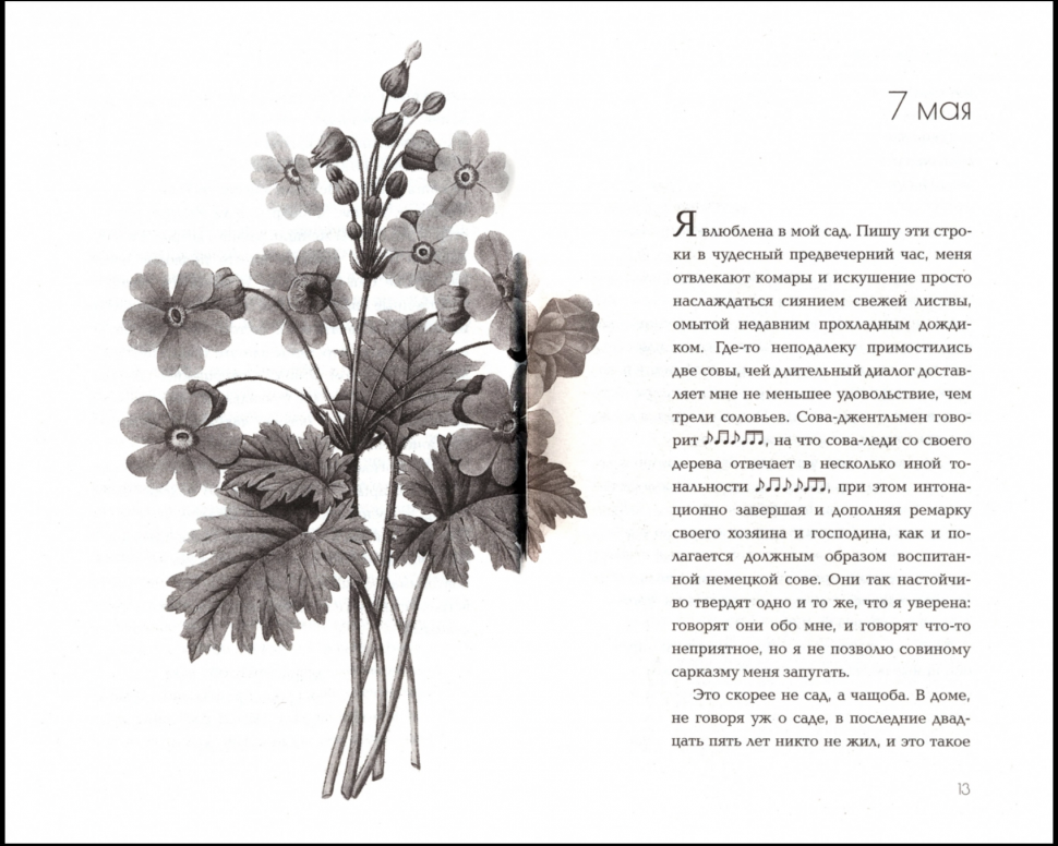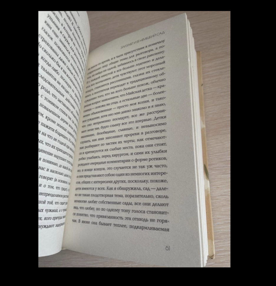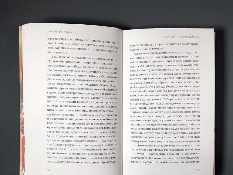 Прекрасное путешествие по саду Элизабет, а также по фрагментам из ее жизни. Потрясающие описания сада в различных его сезонных периодах. Вместе с героиней мы гуляли мимо цветущих кустов, читали в беседке, сажали цветы, постигали азы садоводства и это было очень атмосферно. На фоне этого чудесного сада мы также наблюдали за другими аспектами жизни Элизабет: ее взаимоотношениями с семьей, друзьями