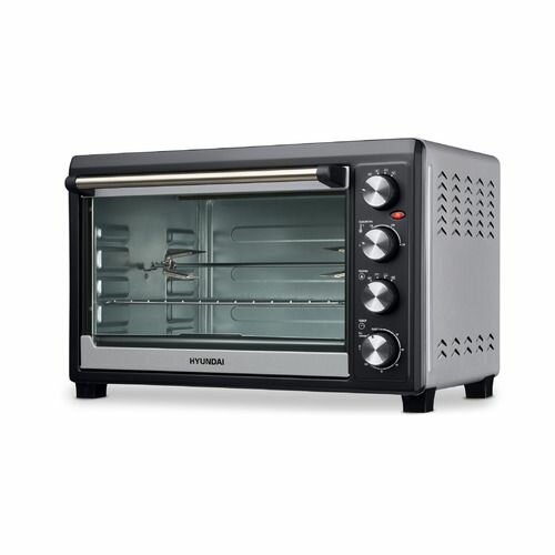 Мини-печь Hyundai MIO-HY076 серебристый/черный, мощность 2000Вт, объем духовки 45л., механическое управление, температура терморегулятора 100-250 С
