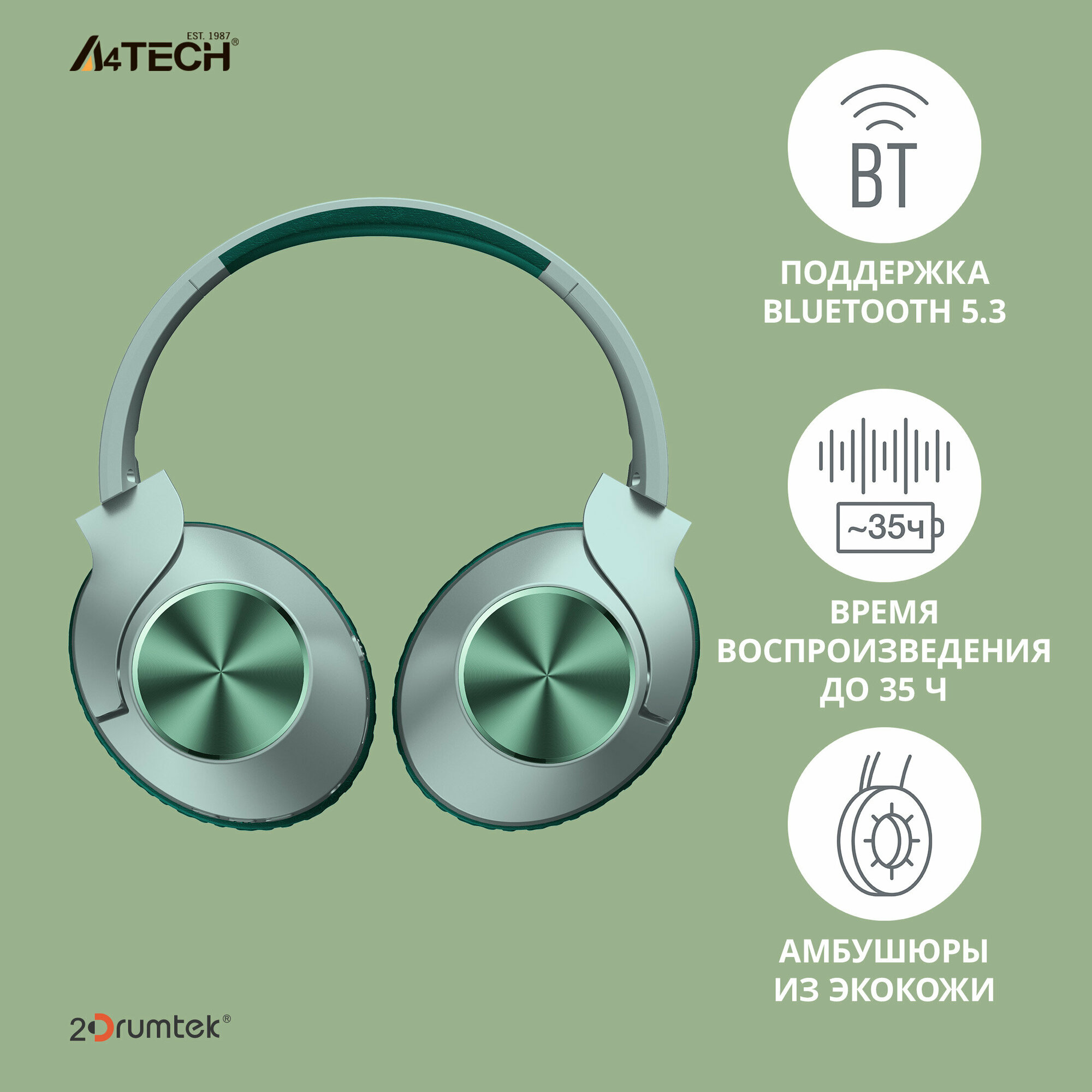 Наушники мониторные A4Tech 2Drumtek BH300 1м зеленый беспроводные bluetooth оголовье (BH300 MATCHA GREEN)