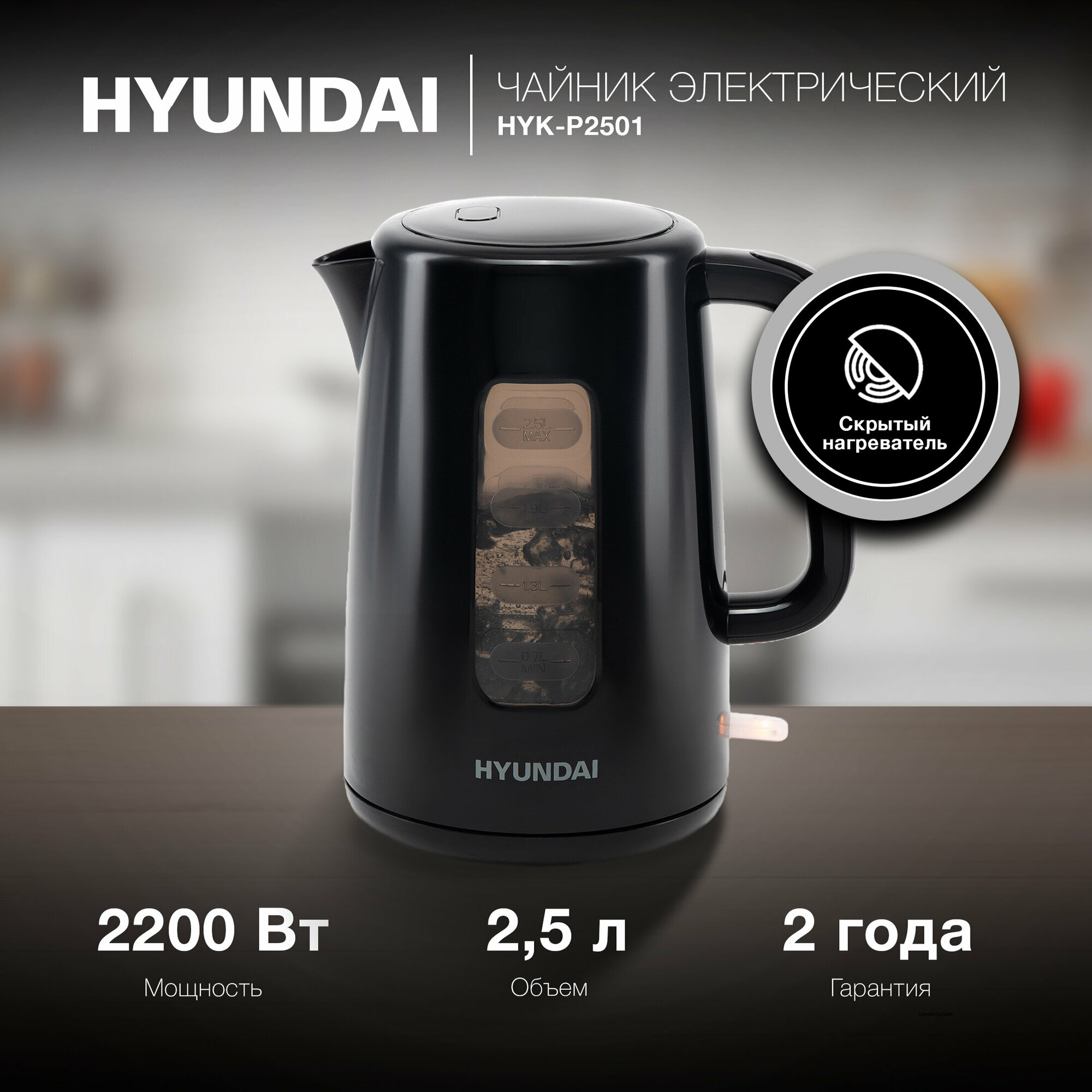 Чайник электрический Hyundai HYK-P2501, 2200Вт, черный