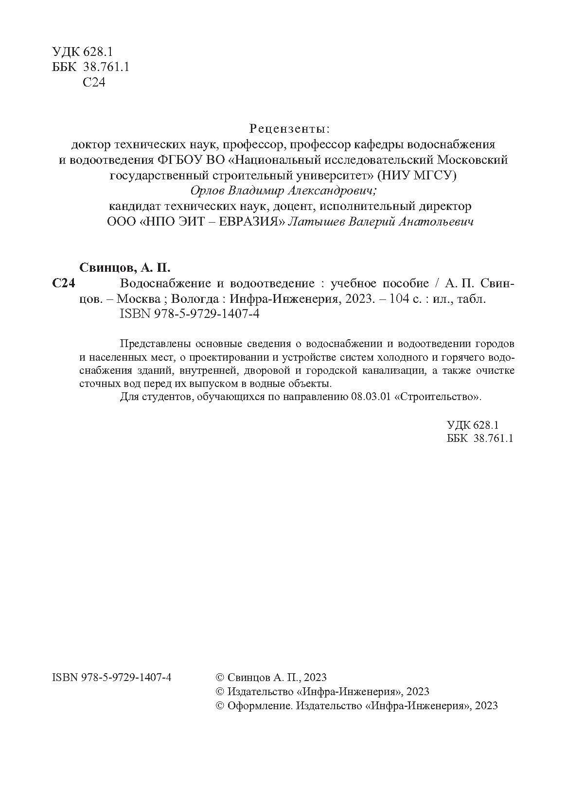 Водоснабжение и водоотведение. Учебное пособие (Александр Свинцов); Инфра-Инженерия, 2023