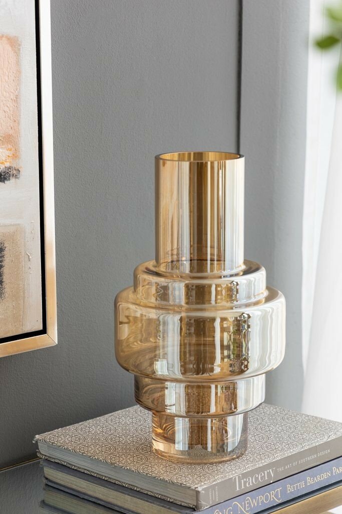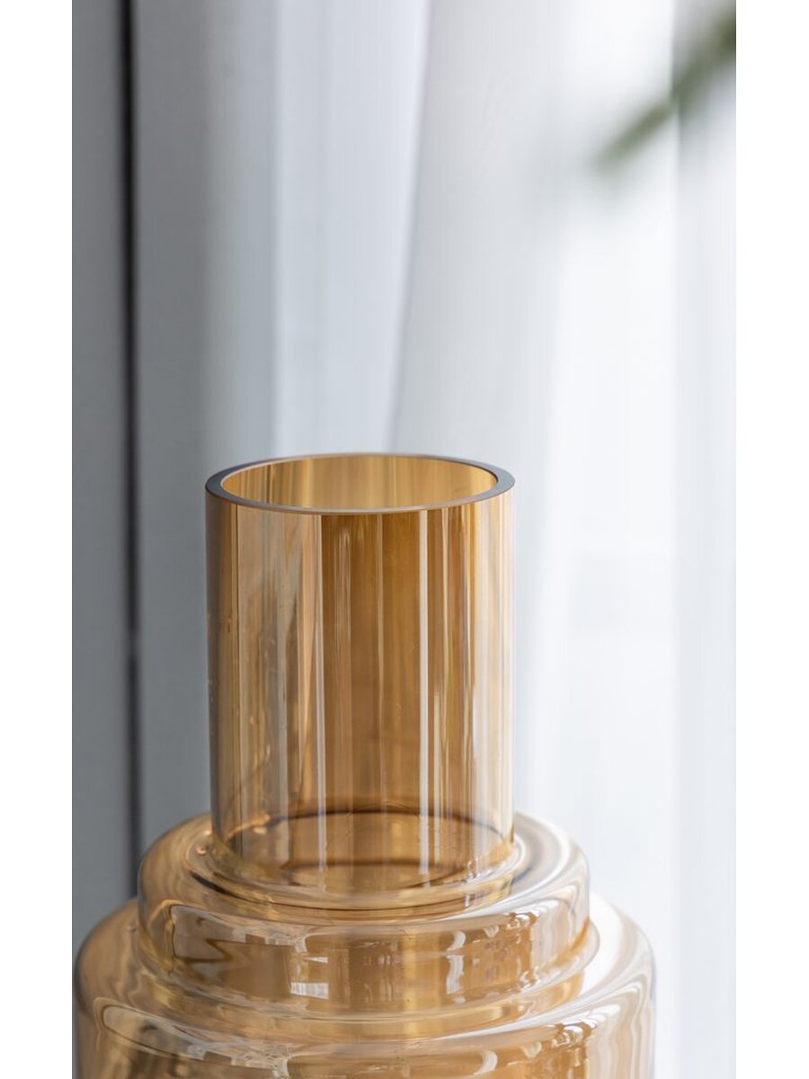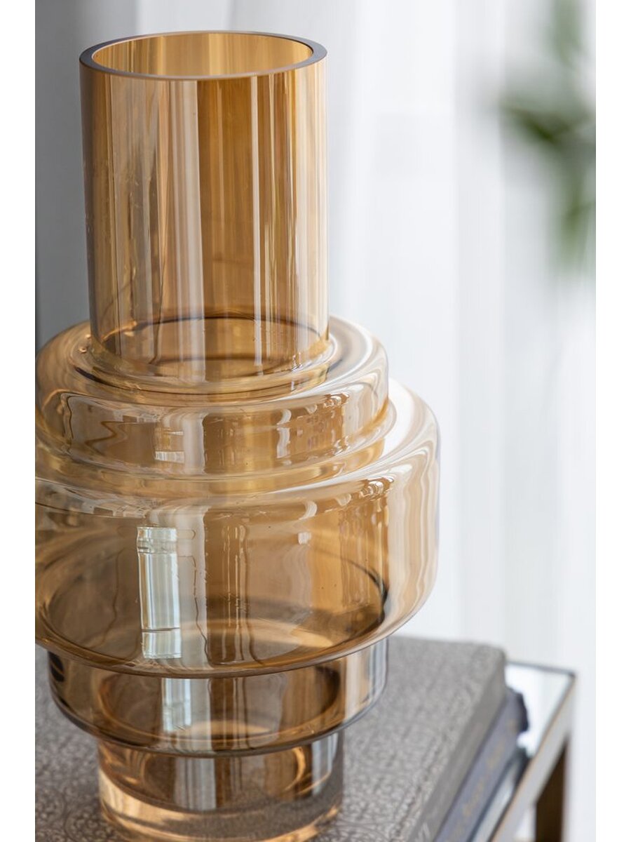 Ваза стеклянная для цветов Glasar 20 х 20 х 35 см коричнево-прозрачная