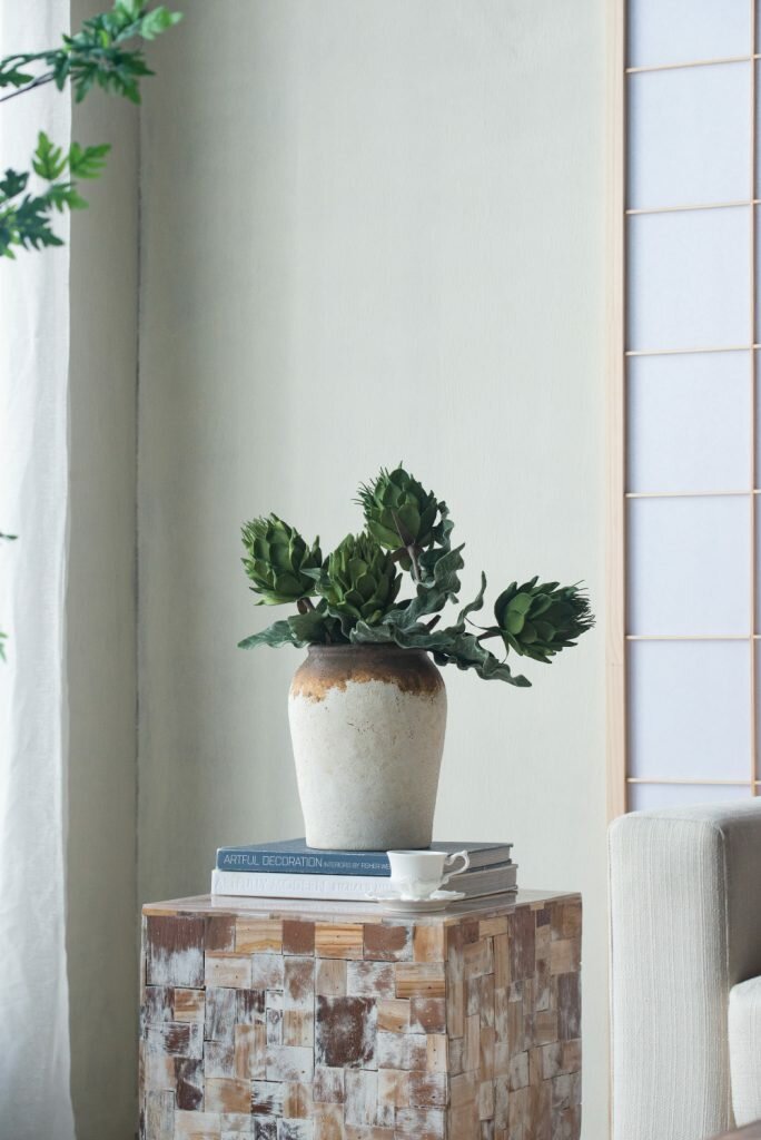 Ваза керамическая для цветов Glasar 20 х 20 х 25 см коричнево-белая