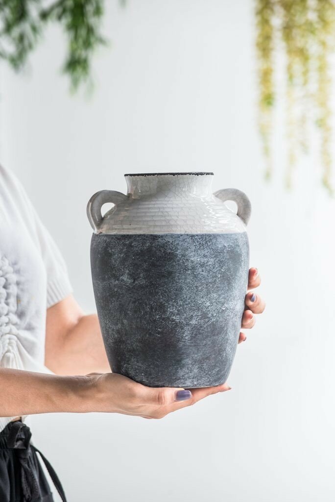 Сервис сравнения цен СкидкаГИД предлагает сравнить цены на товар «Ваза керамическая для цветов Glasar 17 x 17 x 23 см серо-бежевая»