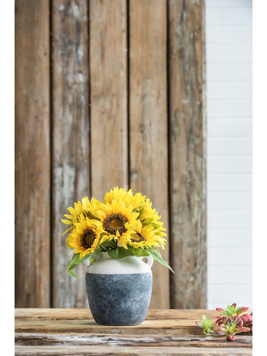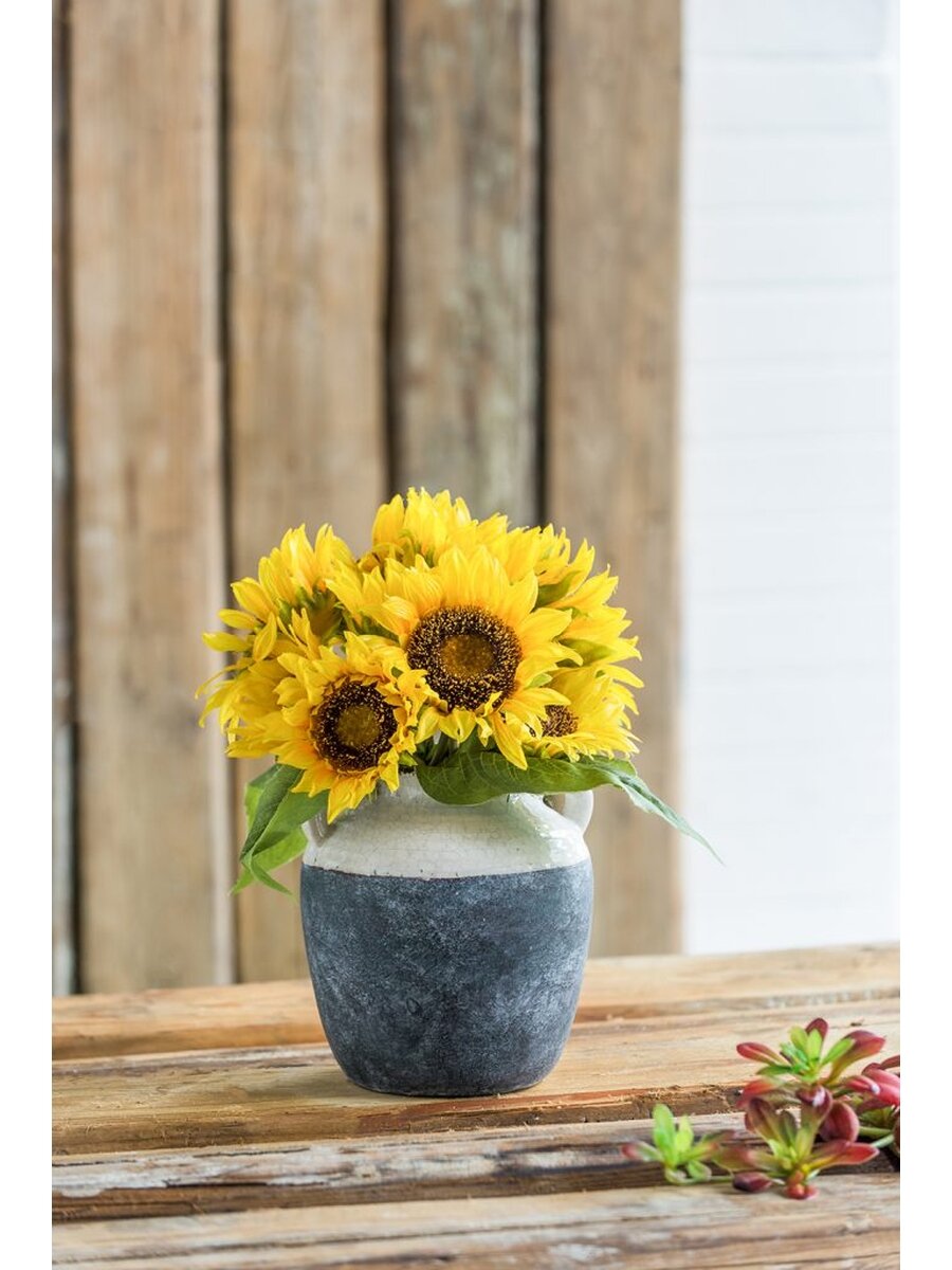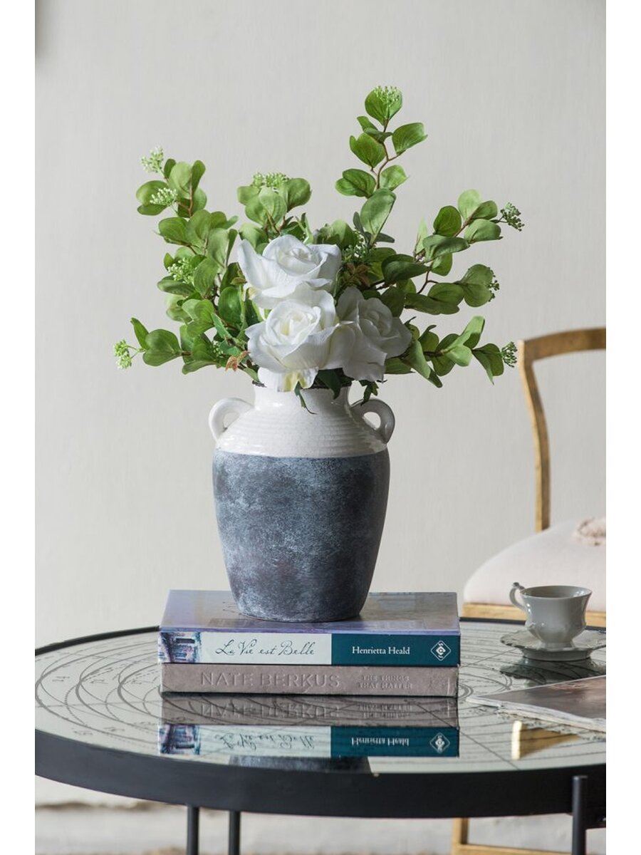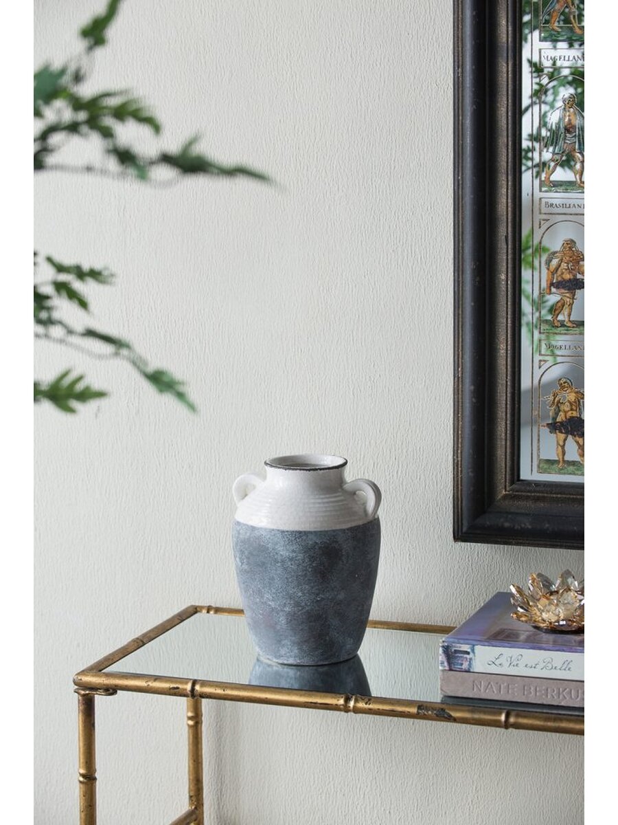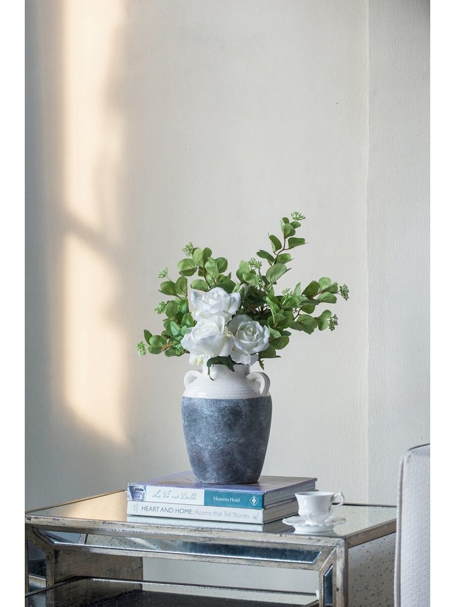 Ваза керамическая для цветов Glasar 17 x 17 x 23 см серо-бежевая