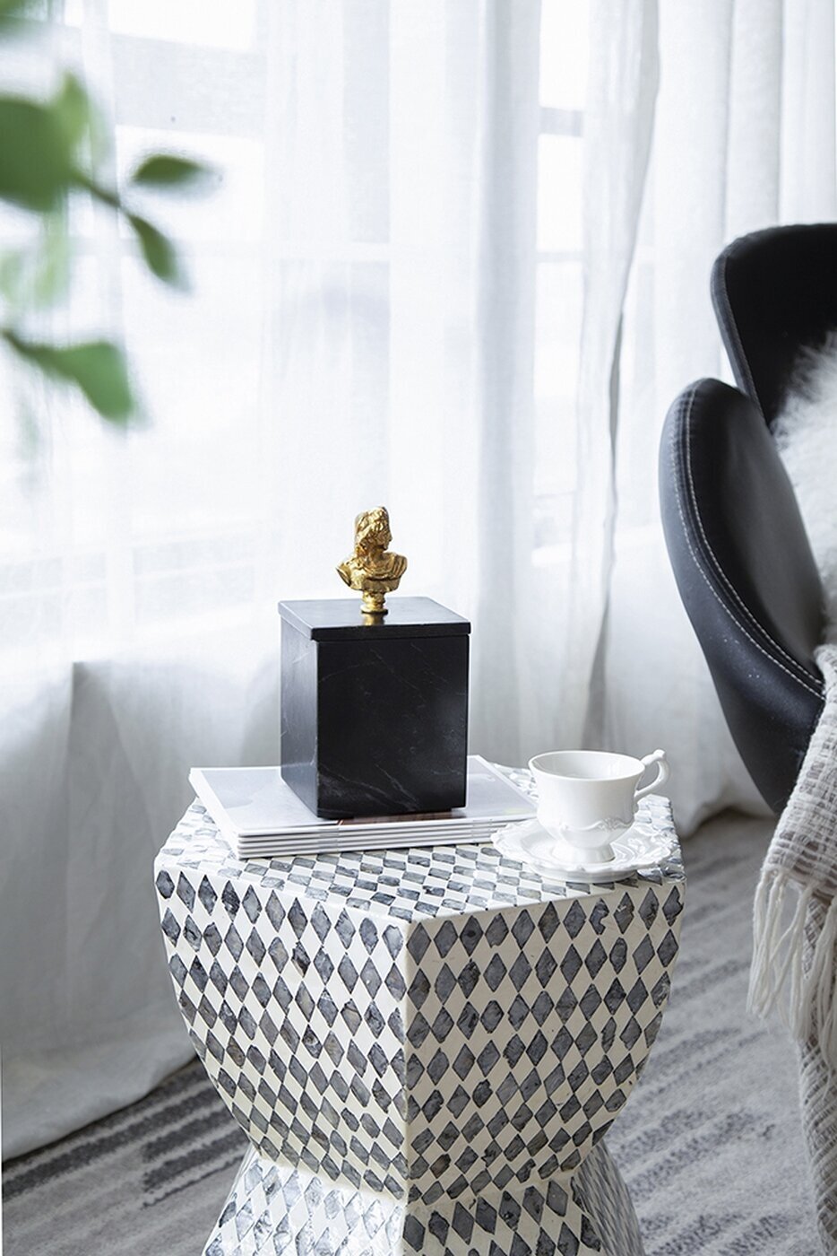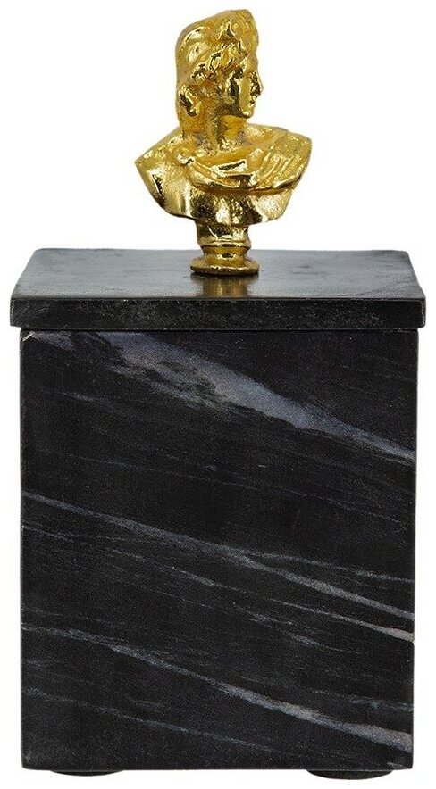 Элегантная шкатулка из черного мрамора со съемной крышкой, увенчанной бюстом древних богов золотистого оттенка. Храните свои предметы в этом изделии и размещайте их на любой поверхности.