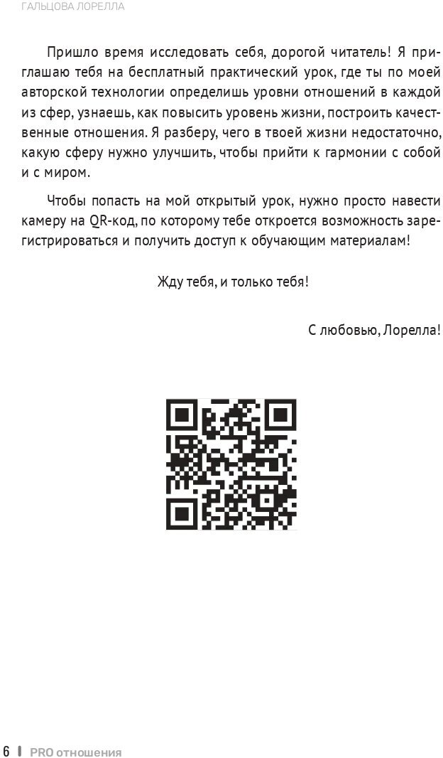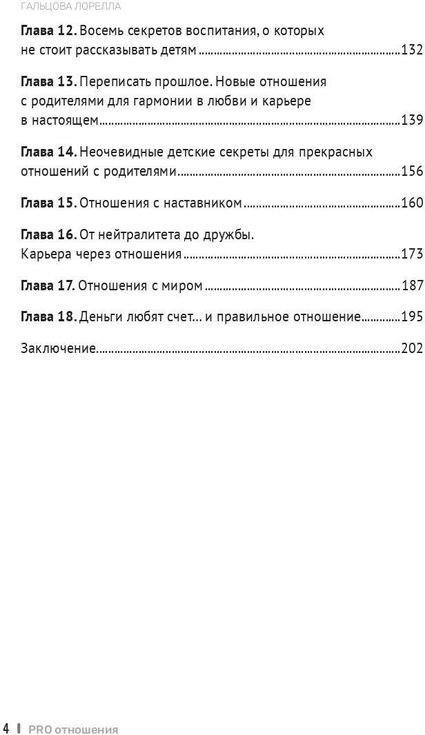 Книга «Pro отношения» психолога Лореллы Гальцовой – это настоящий шедевр, который дает читателю кладезь мудрости для улучшения качества его жизни через улучшение качества отношений. В ней вы найдете множество примеров, позволяющих взглянуть на собственные ошибки, страхи и неэффективные действия в отношениях с самим собой, детьми, партнерами по бизнесу, родителями, супругом, а также с деньгами, здоровьем и другими важными аспектами жизни.