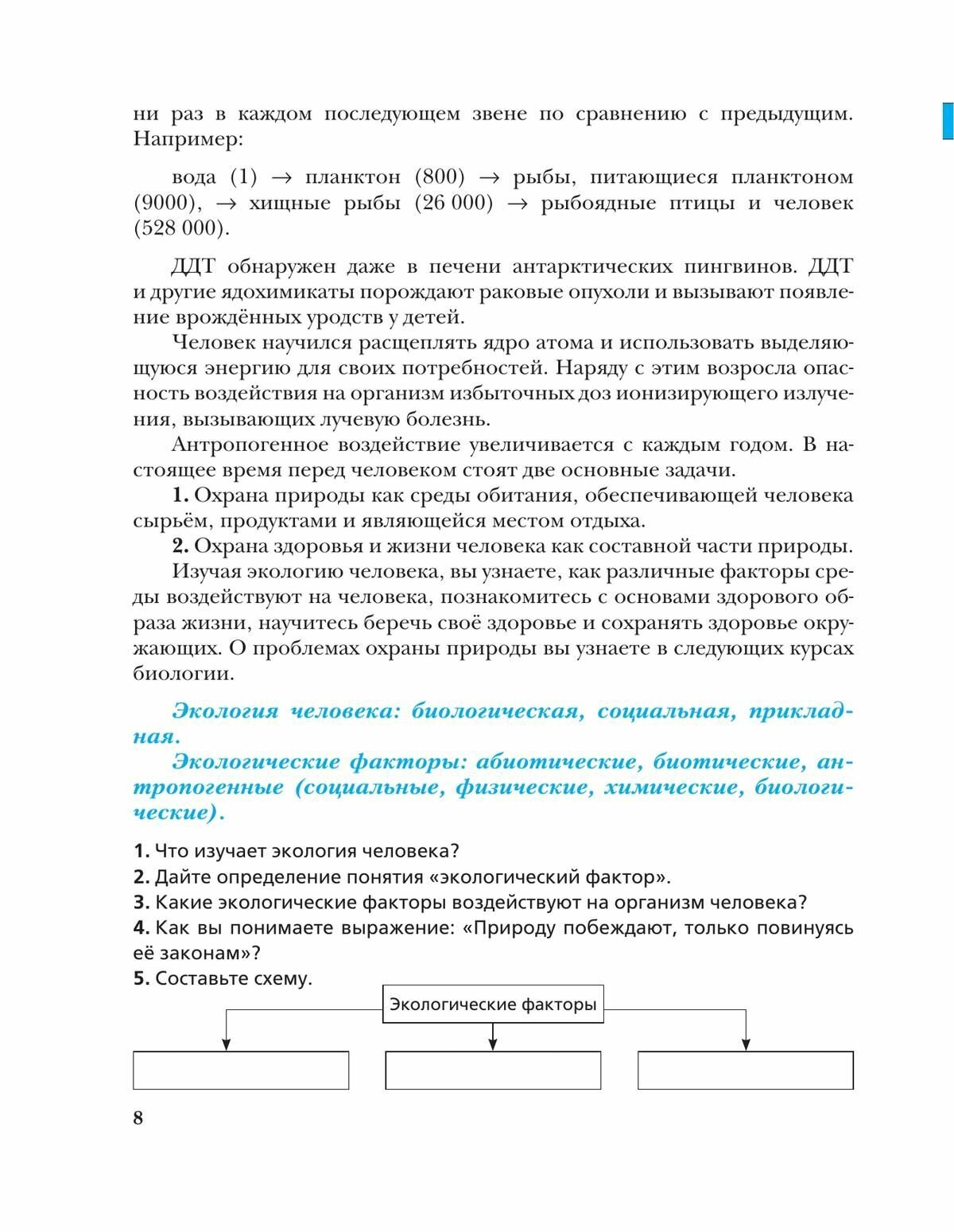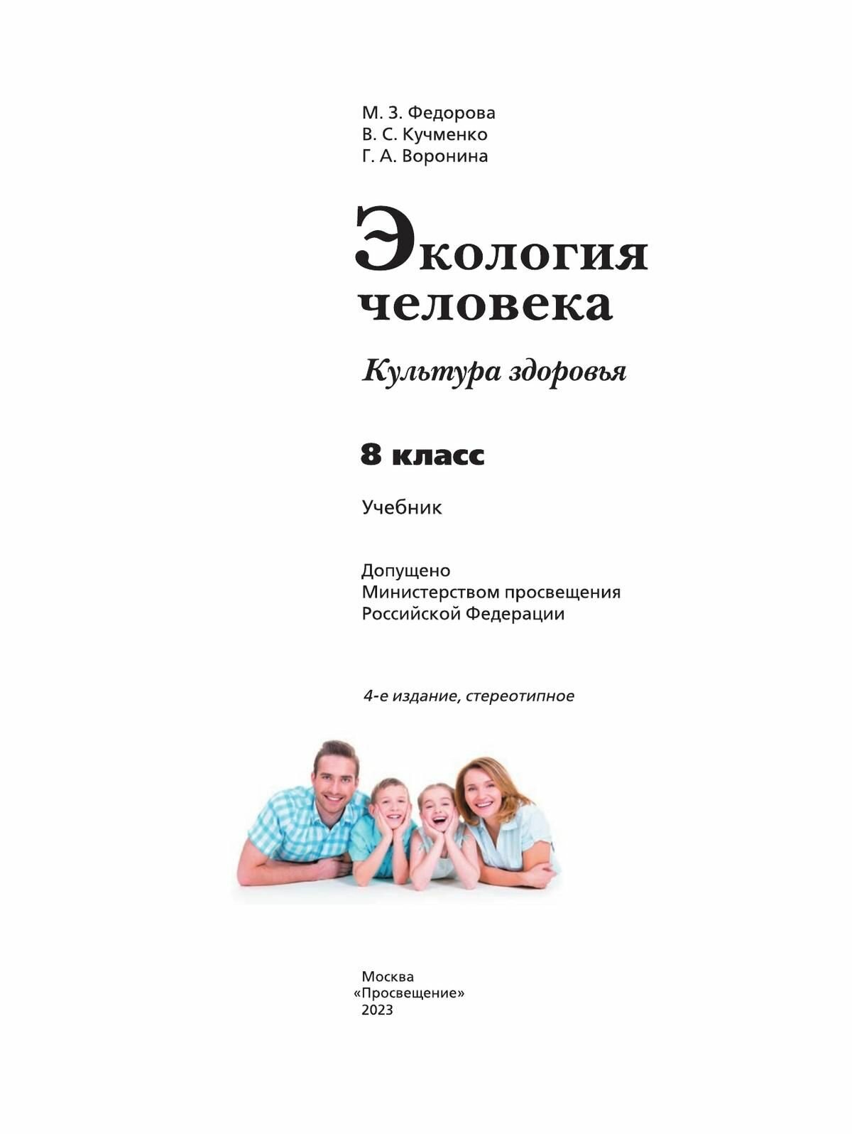 Экология человека. Культура здоровья. 8 класс. Учебник (Галина Анатольевна Воронина, Марина Зотовна Фёдорова, Валерия Семеновна Кучменко); Просвещение, 2024