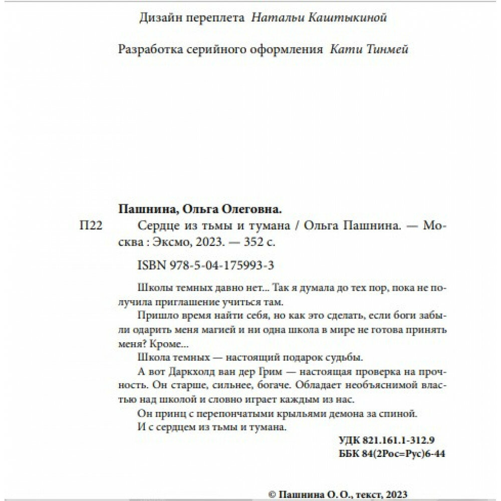 Книга: Сердце из тьмы и тумана (Ольга Пашнина); ООО "Издательство "Эксмо", 2023