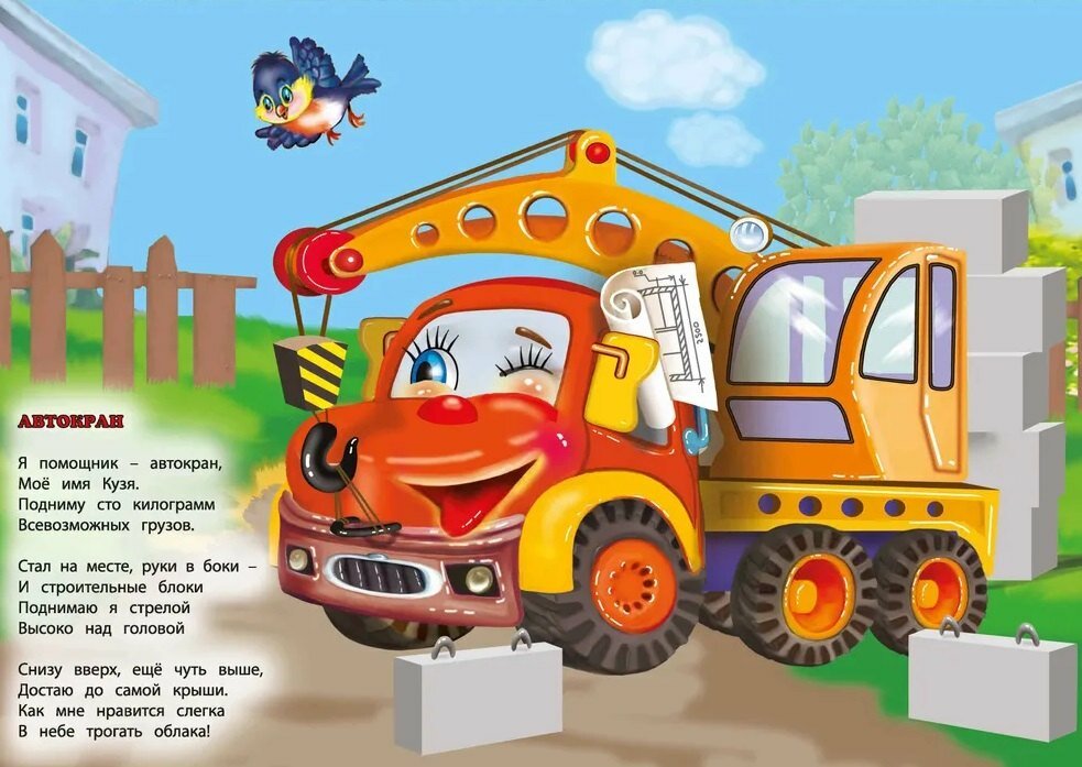 Машинки-помощники. Книжка на картоне со стихами и яркими иллюстрациями.