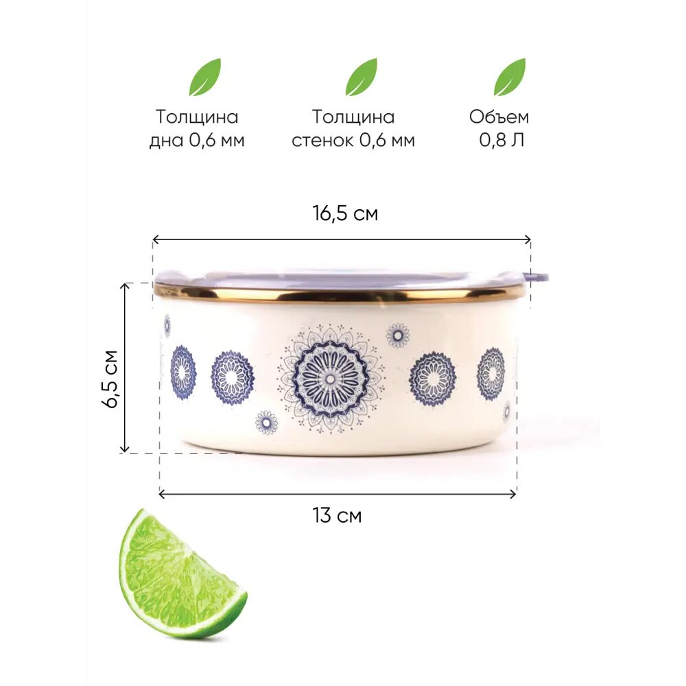 миска КАТЮША Сияние 16см 08л круглая с крышкой эмал.сталь пластик (5022-080-2)