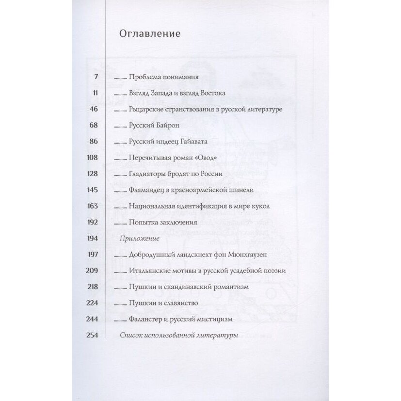 Книга Владимира Ивановича Новикова, литератора, культуролога, кандидата филологических наук, посвящена некоторым аспектам культурно-исторических связей России и Запада. На примере таких произведений, как лубочные повести о Бове-королевиче и Еруслане Лазаревиче, "Песнь о Гайавате" Лонгфелло, романы "Овод" Войнич и "Спартак" Джованьоли, пьеса Кроммелинка "Великодушный рогоносец", сказка Коллоди "Приключения Пиноккио", и сочинений других иностранных авторов рассматриваются вопросы влияния зарубежной литературы на судьбы и развитие отечественной литературы.