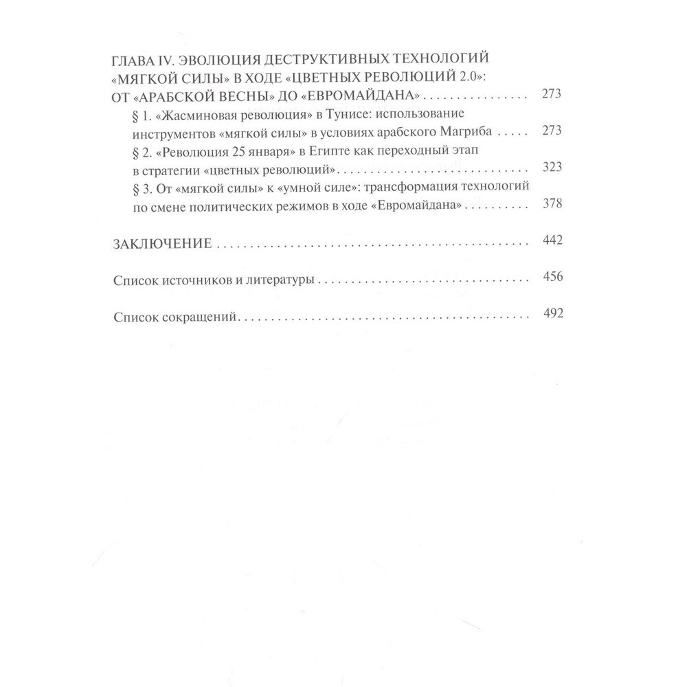 Монография посвящена исследованию "цветных революций" - операций по смене политических режимов, которые на протяжении первых пятнадцати лет XXI в. произошли сразу в шести государствах Восточной Европы, Закавказья, Центральной Азии и Северной Африки. Основной акцент сделан на анализе технологий "мягкой силы", которые использовались США и их союзниками для осуществления государственных переворотов в Сербии, Грузии, Украине, Киргизии, Тунисе, Египте и вновь на Украине. Организованные коллективным Западом с помощью новейших приемов геополитической инженерии "цветные революции" привели к драматическим последствиям как для системы глобального управления, так и для внутреннего развития суверенных стран. Международные кризисы, перманентная политическая турбулентность, социально-экономический коллапс, утрата реального суверенитета - таковы основные итоги "цветных революций". А в ряде случаях - как на Украине - технологии по смене политических режимов и вовсе привели к полномасштабному вооруженному конфликту и полному коллапсу государственности.