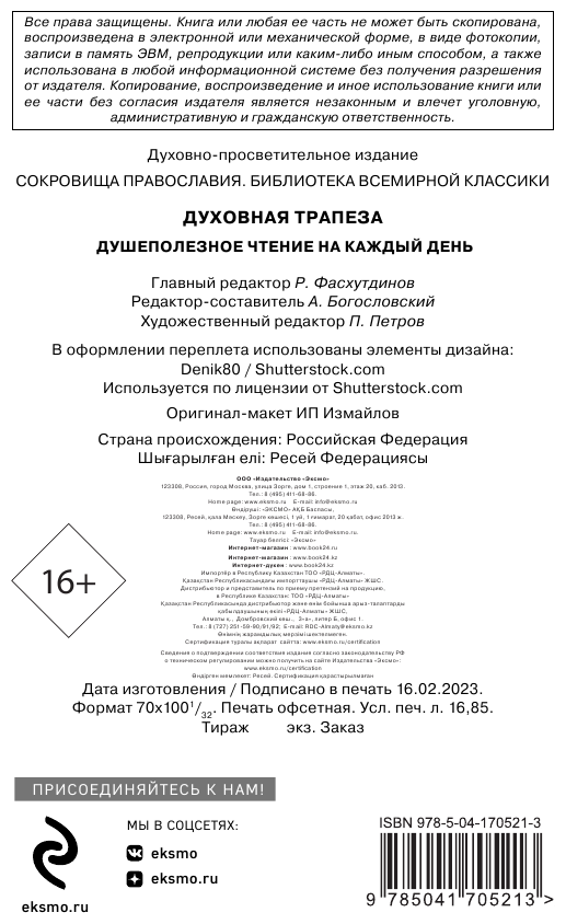 Духовная трапеза. Душеполезное чтение на каждый день (Богословский А. (составитель)); ООО "Издательство "Эксмо", 2023