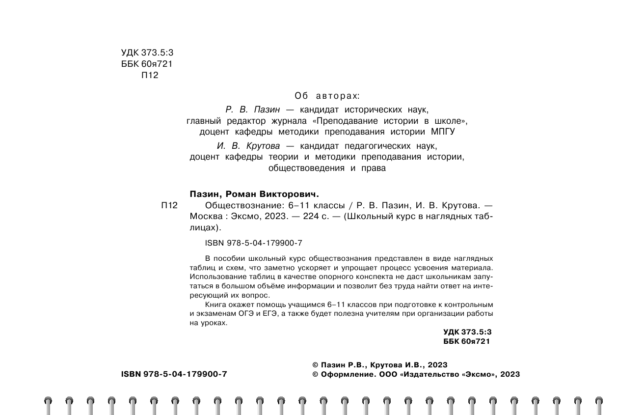 Обществознание: 6-11 классы (Пазин Роман Викторович, Крутова Ирина Владимировна); ООО "Издательство "Эксмо", 2023