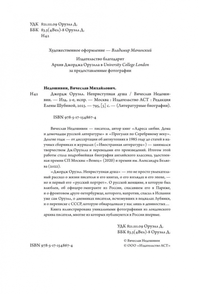 Джордж Оруэлл. Неприступная душа (Недошивин Вячеслав Михайлович); АСТ, Редакция Елены Шубиной, 2023