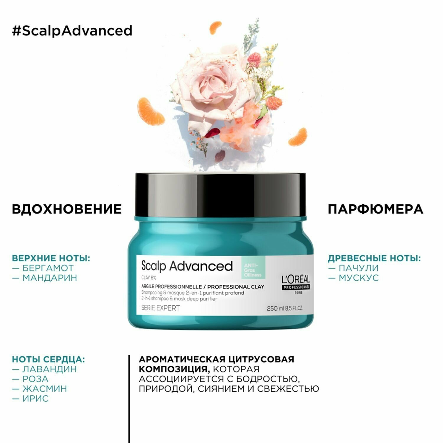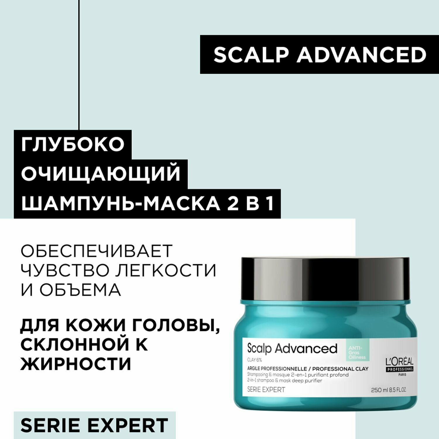 Шампунь-маска 2-в-1 Scalp Advanced для жирной кожи головы 500 мл L'oreal Professionnel (ЭХ99989439541)
