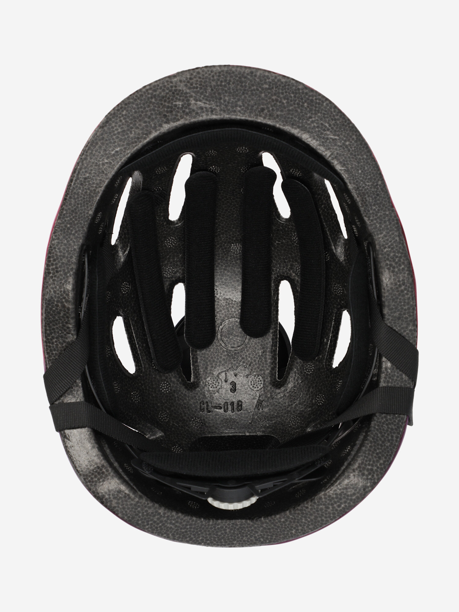 Велосипедный шлем. Модель соответствует стандарту 1078. Детали: внешняя раковина из ПВХ, внутренняя раковина из пенопласта, подкладка из нейлона, поворотное кольцо, принудительная вентиляция, конструкция Out-mold.