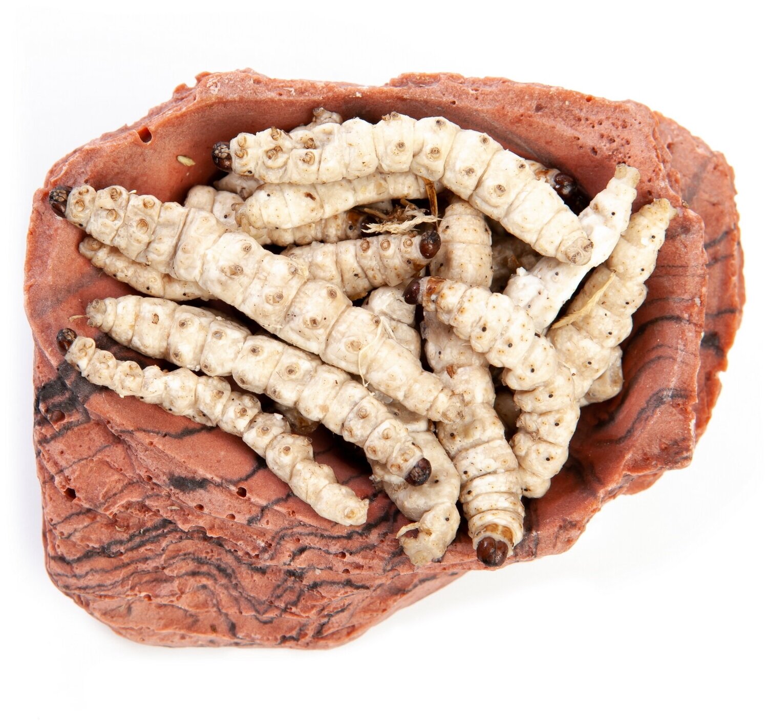 Бамбуковые черви – это большие, вкусные и очень питательные личинки бамбуковой бабочки, они особенно привлекательны для всех насекомоядных рептилий. Из-за высокого содержания жиров не подходят для постоянного кормления: этих личинок следует давать лишь изредка, в качестве лакомства. Бережная технология приготовления сохраняет максимум полезных питательных веществ. Не содержит искусственных добавок, консервантов и красителей.