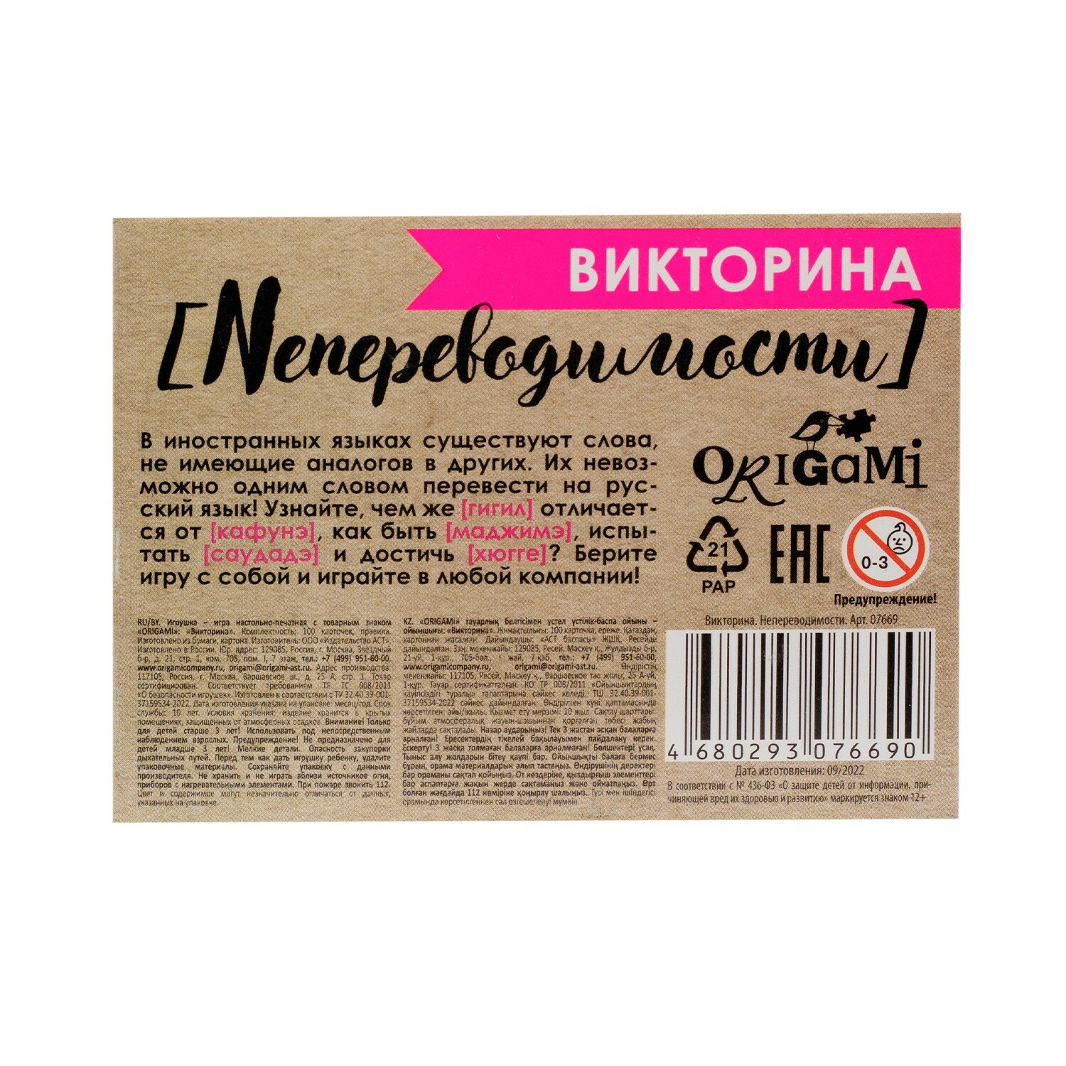 Игра настольная Викторина. Непереводимости ОРИГАМИ