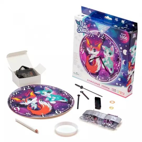 Приглашаем Вас совершить блестящее путешествие в мир алмазной мозаики. Сделать часы Neo Stars "Космические животные" очень просто: нужно лишь снять защитный слой с основы и украсить ее яркими стразами по номеру и цвету с помощью специального карандаша-стилуса. Завершающим аккордом в таком блестящем творчестве станет установка настоящего часового механизма в готовое изделие! Часы станут изысканным подарком и стильным украшением интерьера!