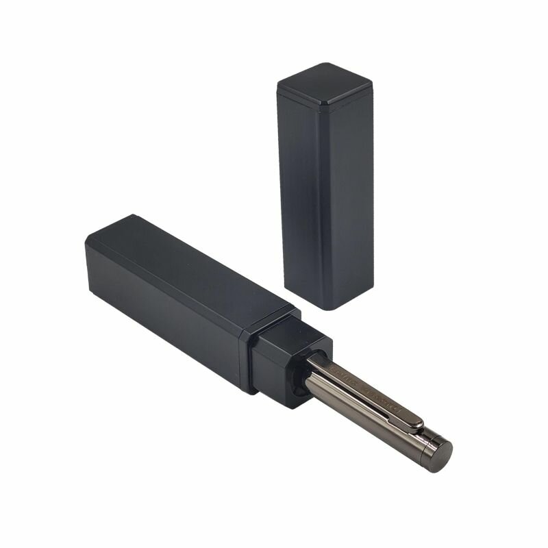 Лаконичный дизайн, строгость формы, прочный металлический корпус в цвет вороненой стали, подчеркнут статус владельца ручки.