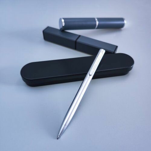 Лаконичный дизайн, строгость формы, прочный металлический корпус в цвет серебра, подчеркнут статус владельца ручки.