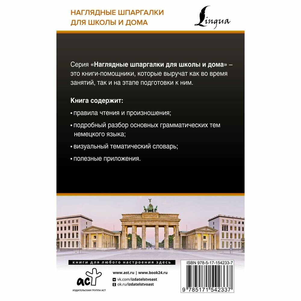 На сегодняшний день товар «Книга: Немецкий язык для школьников. Все правила в таблицах и схемах (Ганина Наталия Александровна); ИЗДАТЕЛЬСТВО "АСТ", 2023» можно купить с кешбеком в 3 магазинах: book24, Буквоед, Читай-город