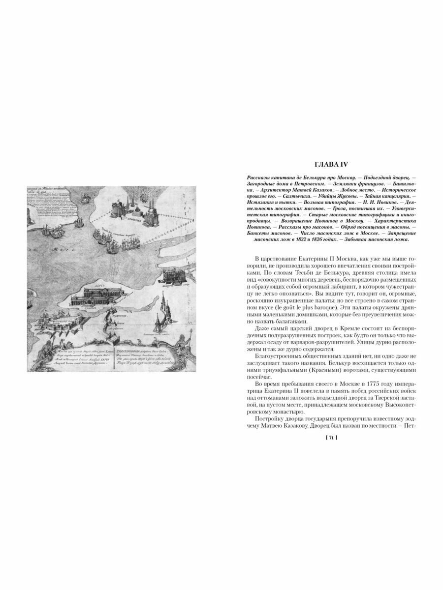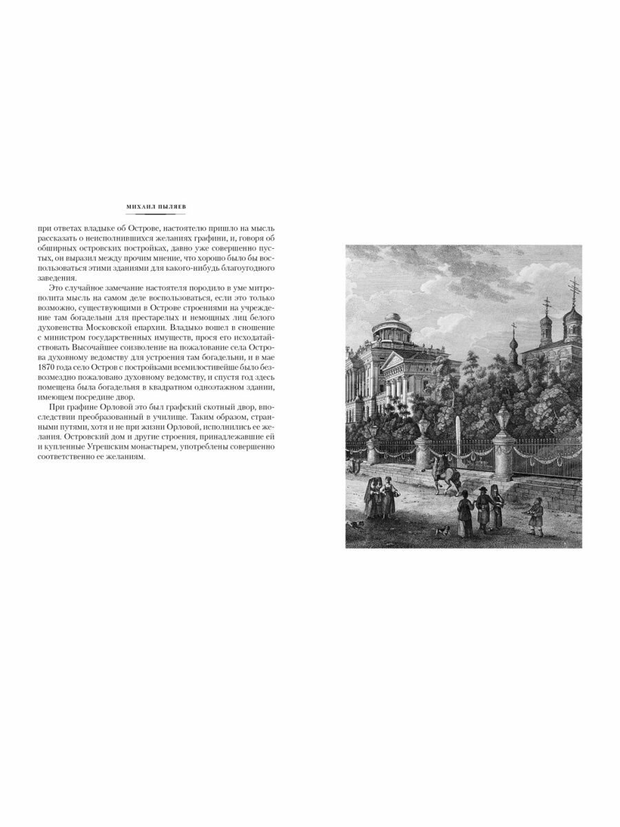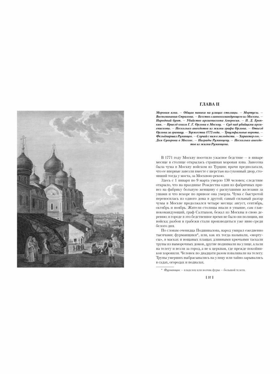 Занимательная книга. Сразу хочу предупредить, что это не строгое историческое описание и не стройный художественный текст. Это, скорее, очерки заметки автора на отдельные темы: как проходили в старой Москве народные гулянья, какими были подмосковные поместья русских аристократов, как работал театр XVII-XVIII веков, какими богатствами владел граф Шереметьев, за что граф Толстой был прозван американцем и пр. Все это рассказывает нам автор на страницах книги. Текст не всегда строен, некоторые детали кажутся излишними, а язык XIX века, возможно, покажется слуху нашего современника несколько непривычным, однако в целом это увлекательная (не без юмора) книга, которая подходит для неспешного чтения и погружения в мир старой Москвы и Петербурга.