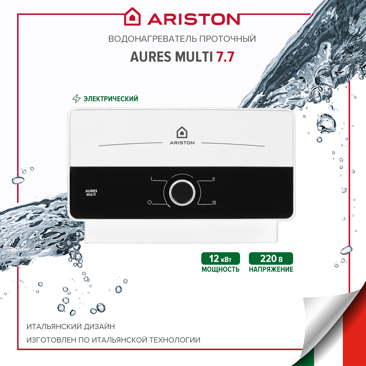 водонагреватель проточный ARISTON Aures SM 77 кВт Aures M 3195213 7.7кВт