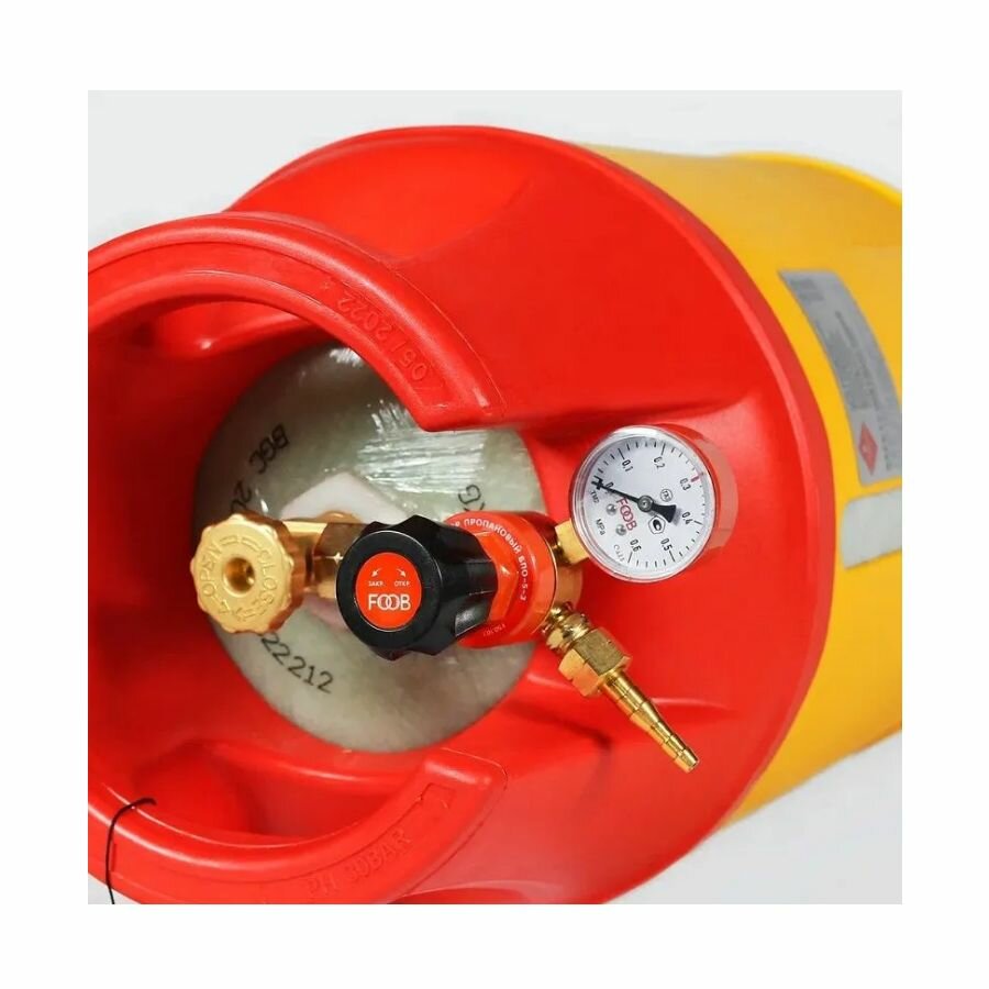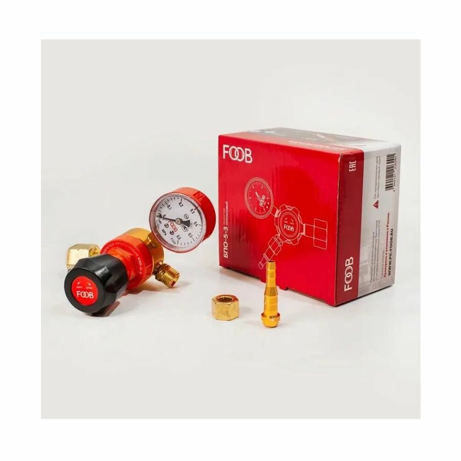 Редуктор пропановый FOOB БПО-5-3 F50.10.1 предназначен для понижения давления газа, поступающего из баллона, и автоматического поддержания постоянным заданного рабочего давления при газопламенной обработке. Редуктор оснащен большим пластиковым маховиком для более удобной и плавной регулировки подачи газа. Подходит для композитных баллоновПреимущества Продукция соответствует нормам ТР ТС Продукция проходит испытательный контроль на лабораторных стендах в России Яркая упаковка со схемами подключения